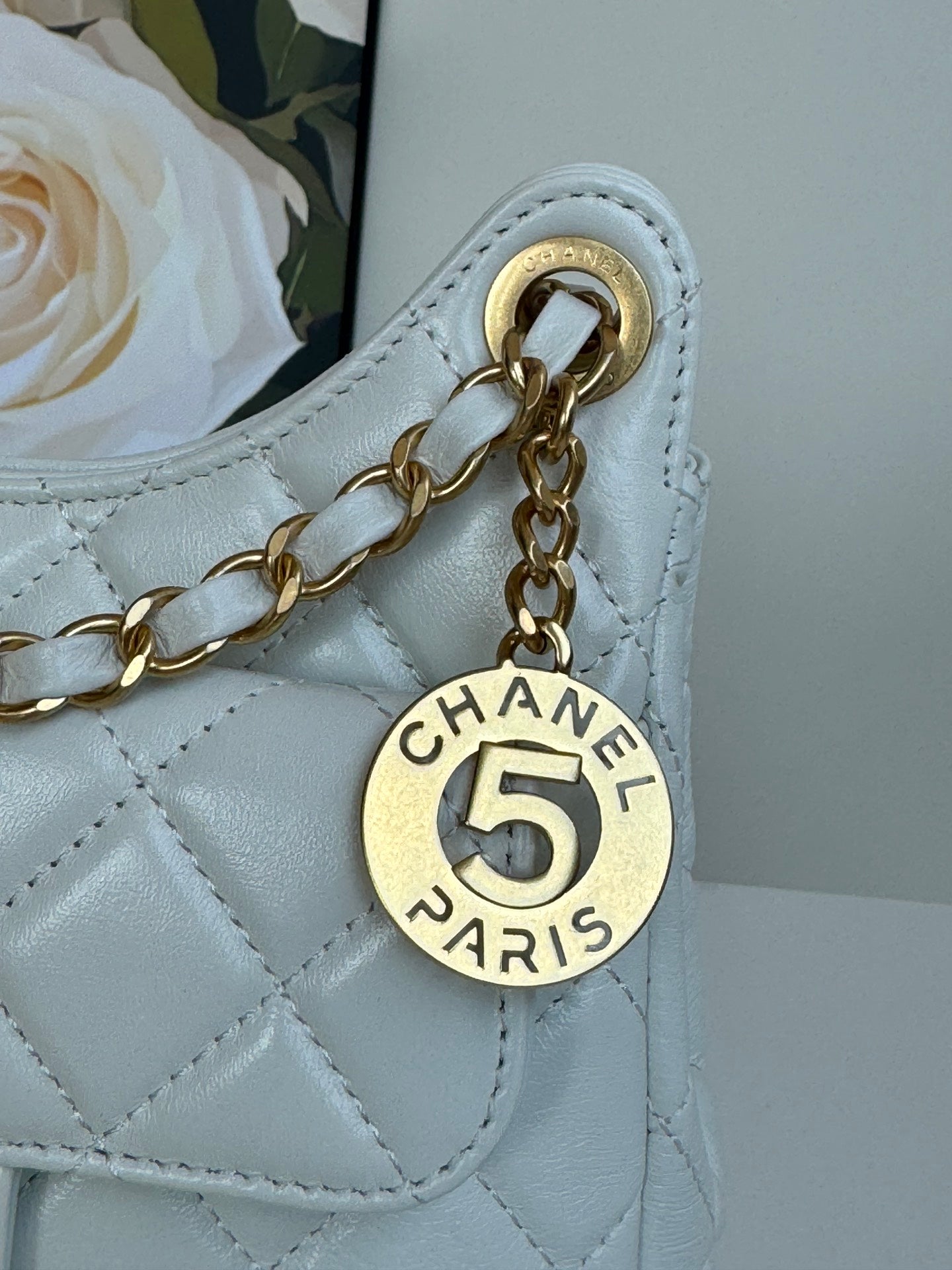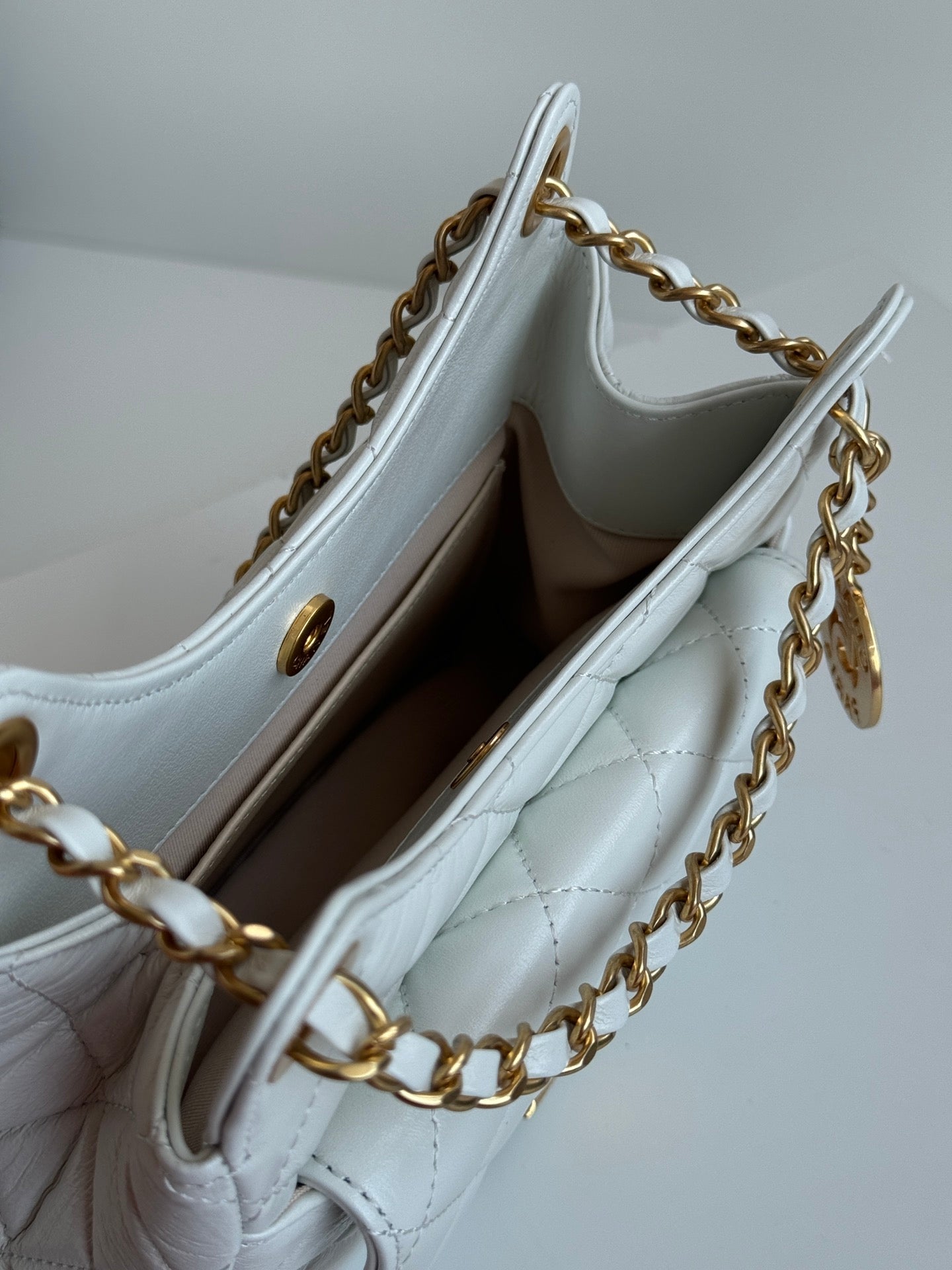 CHANEL 25S HOBO BAG 19 CM IN WHITE LAMBSKIN WITH GOLD HARDWARE