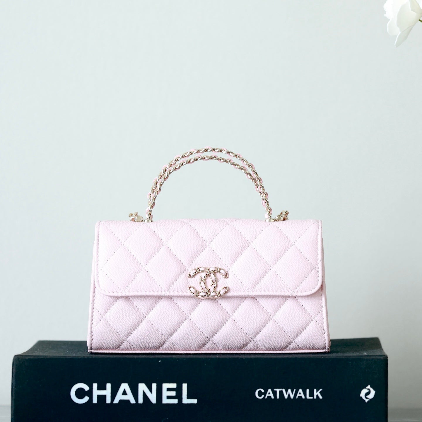CHANEL 25S KELLY IN PASTEL PINK LAMBSKIN WITH GOLD HARDWARE