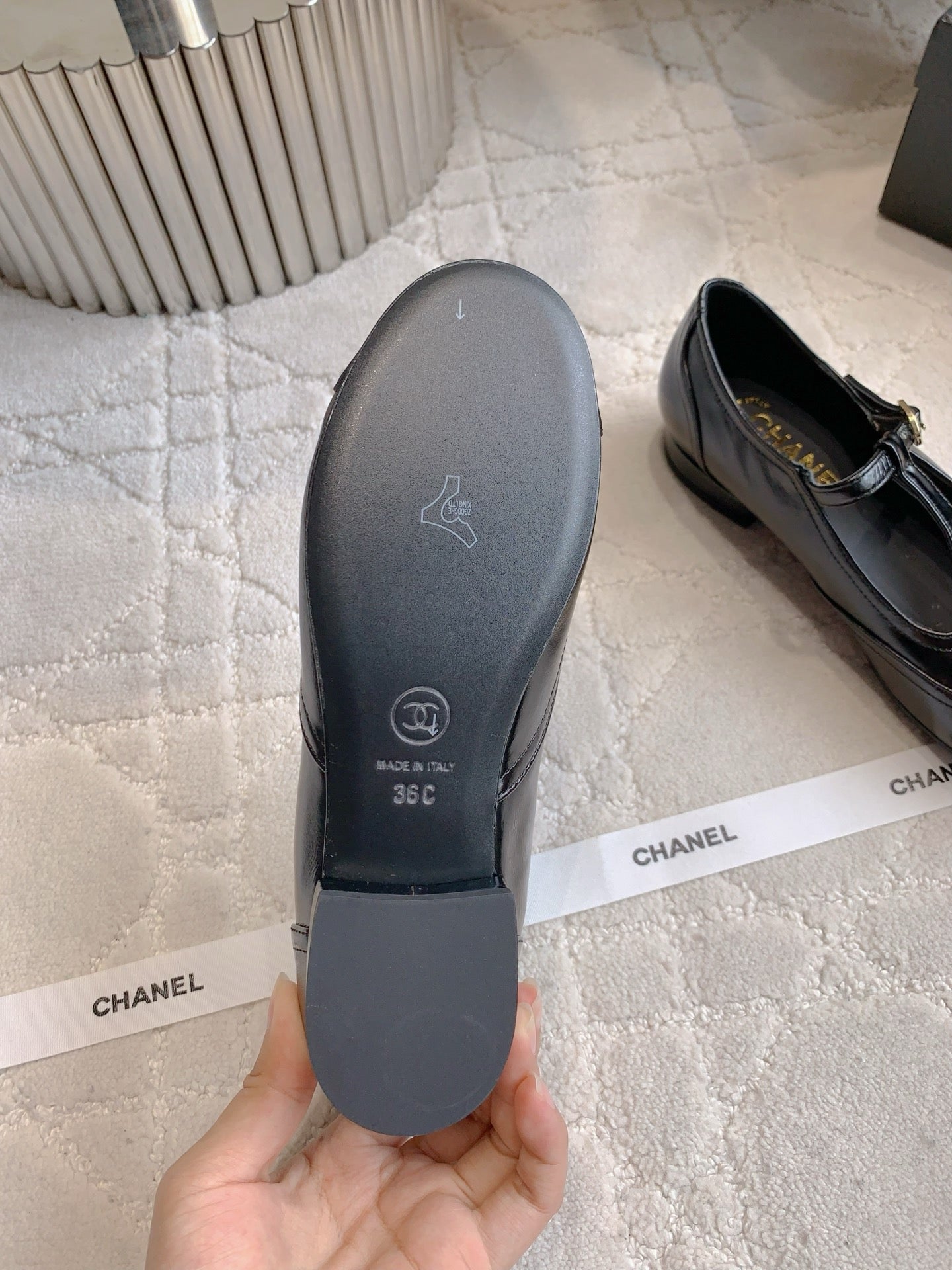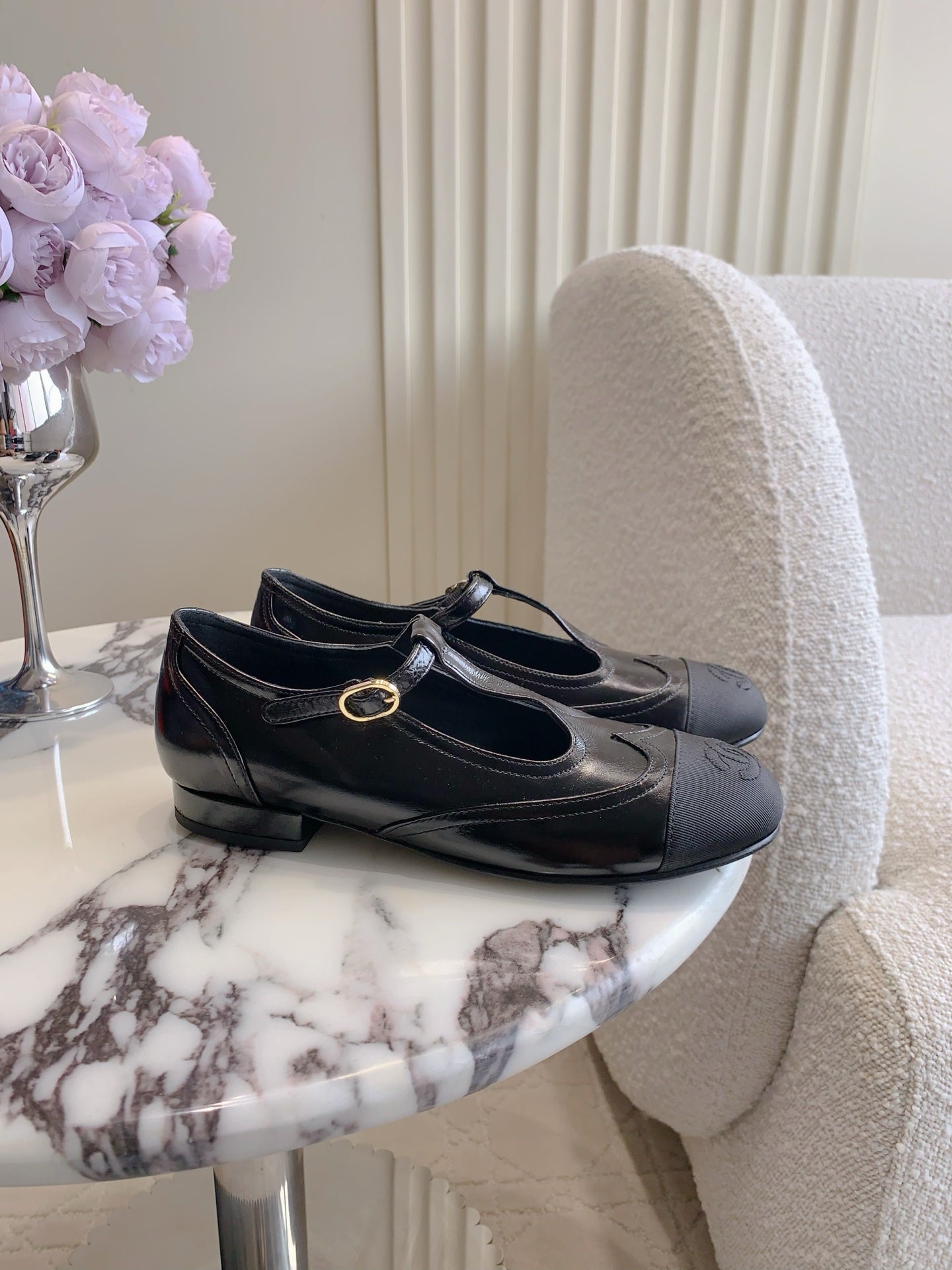 CHANEL 25S MARY JANE IN BLACK FULL CALFSKIN AND CANVAS GOLD HARDWARE