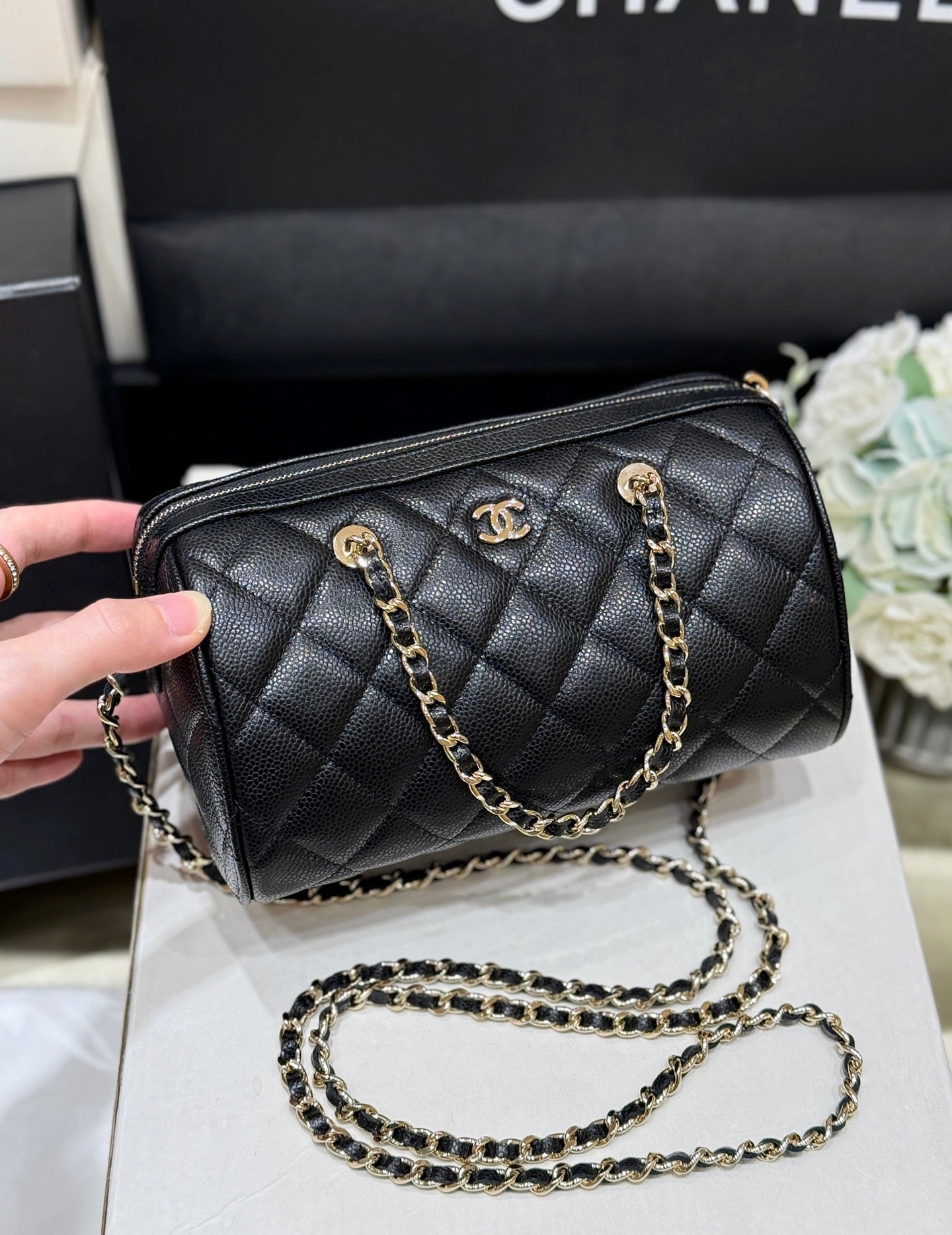 CHANEL 25S MINI BOWLING BAG 18 IN BLACK CALFSKIN GOLD HARDWARE
