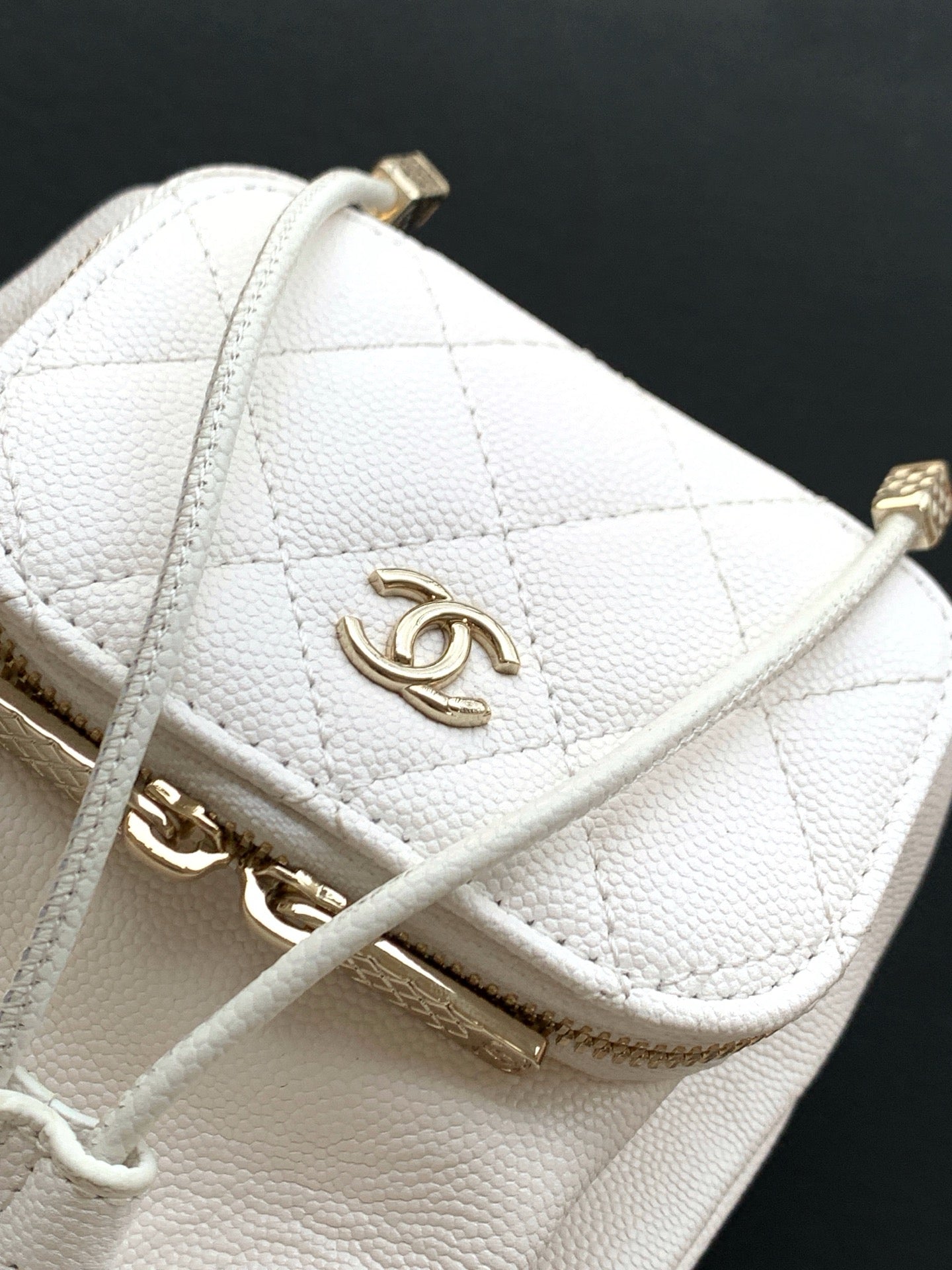 CHANEL 25S MINI BUCKET BAG 12 IN WHITE CALFSKIN GOLD HARDWARE