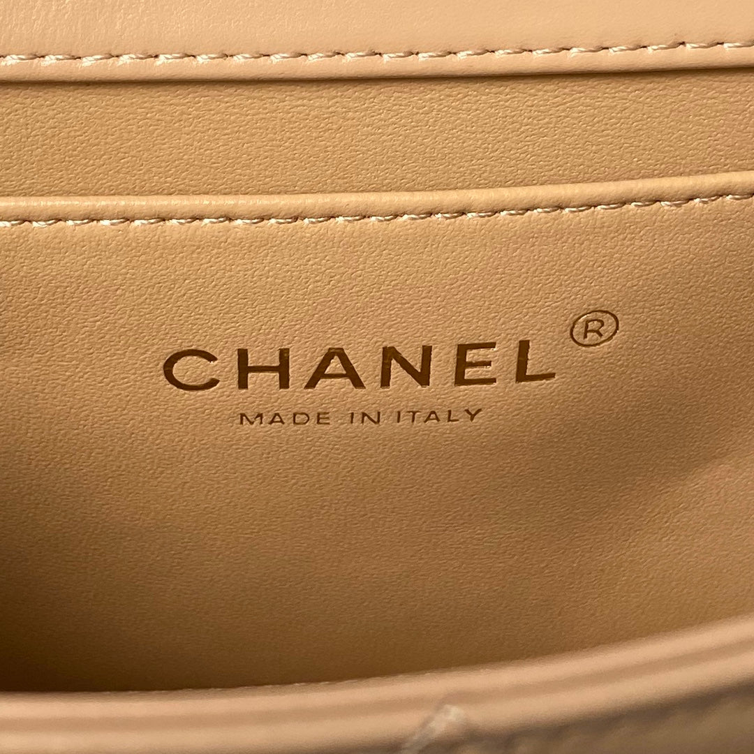 CHANEL 25S MINI FLAP BAG 22 IN TAN BROWN CALFSKIN GOLD HARDWARE