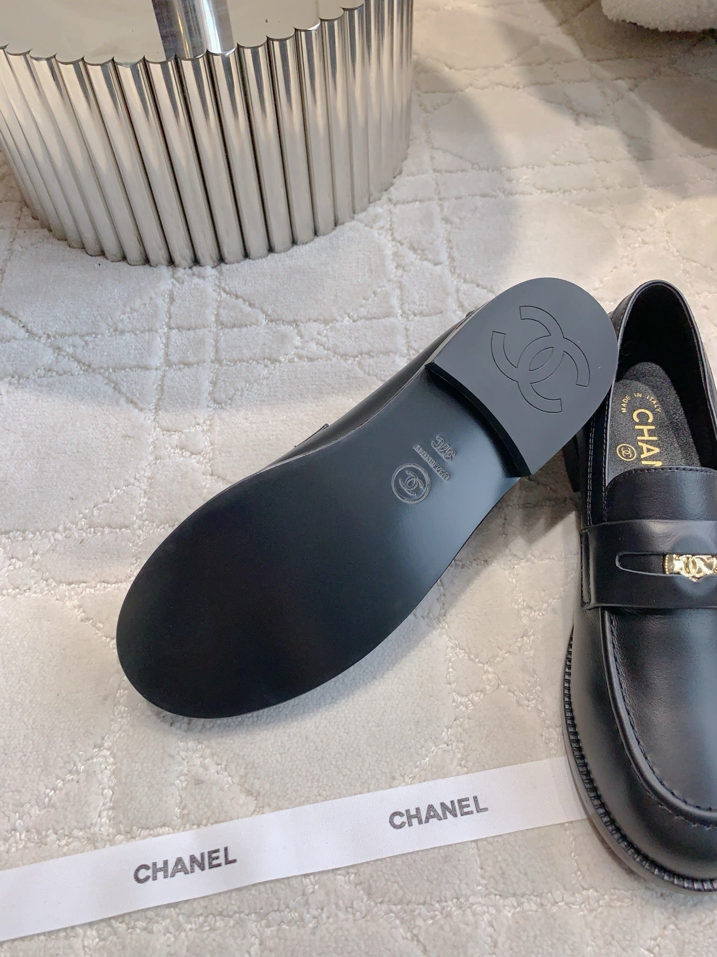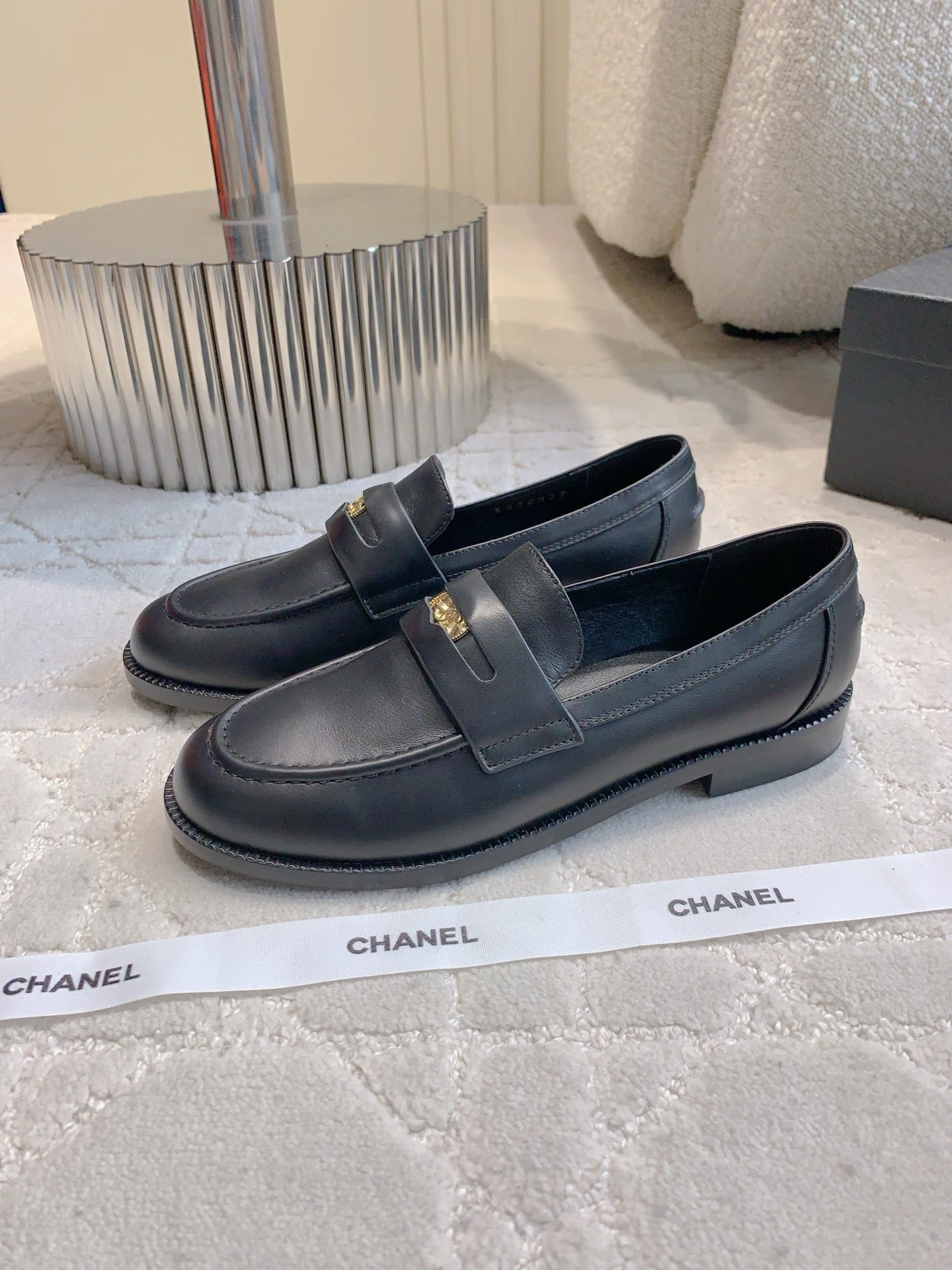 CHANEL 25S MOCCASINS IN BLACK CALFSKIN GOLD HARDWARE