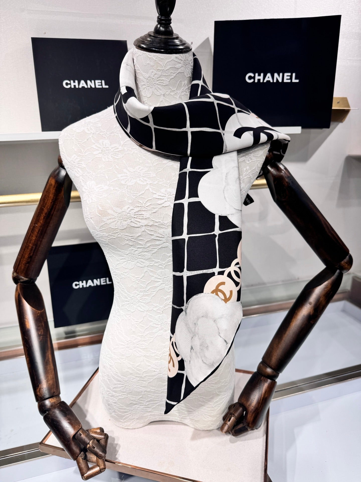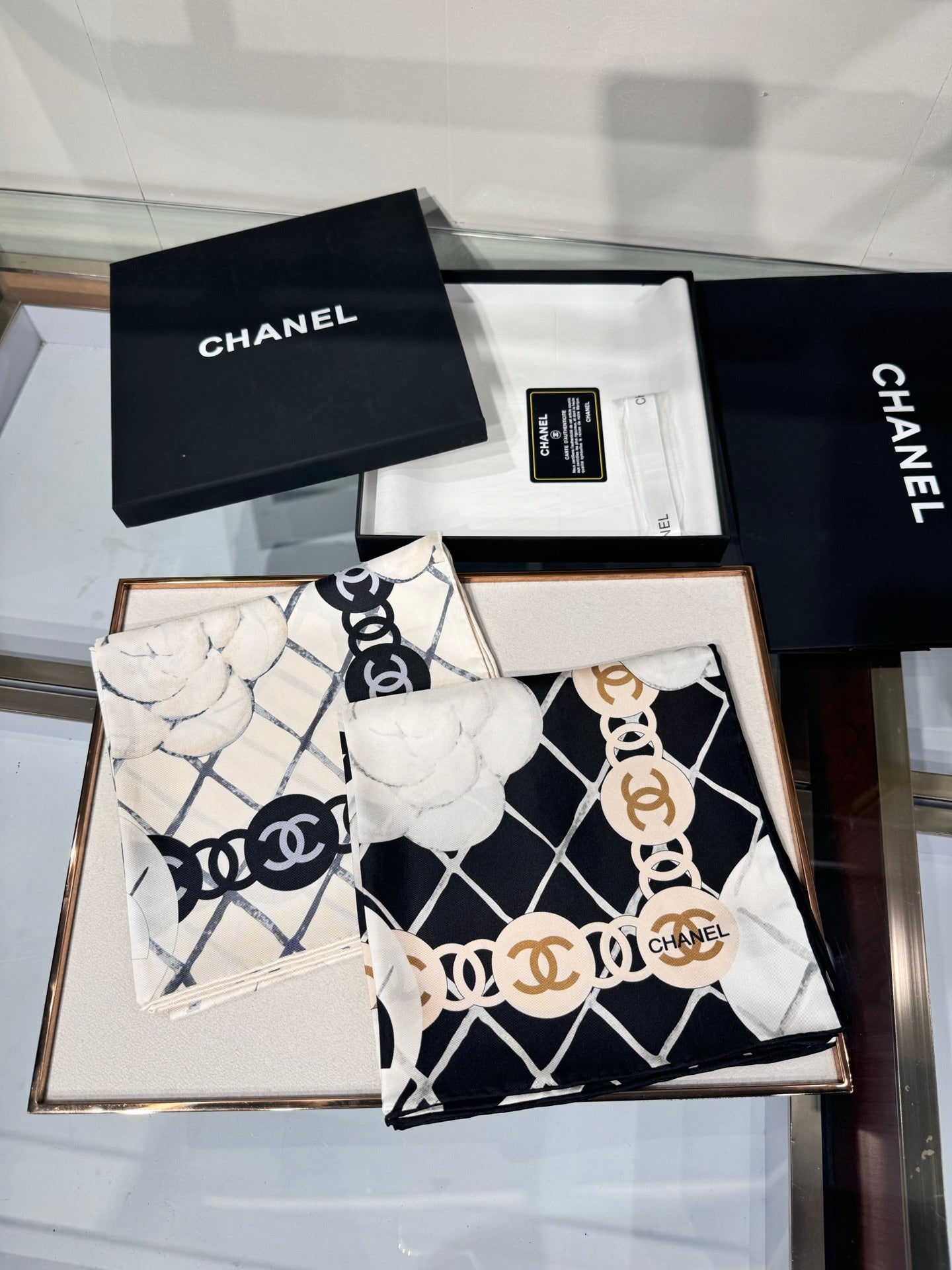 CHANEL 25S SCARF 90 IN CASHMERE SILK 737220