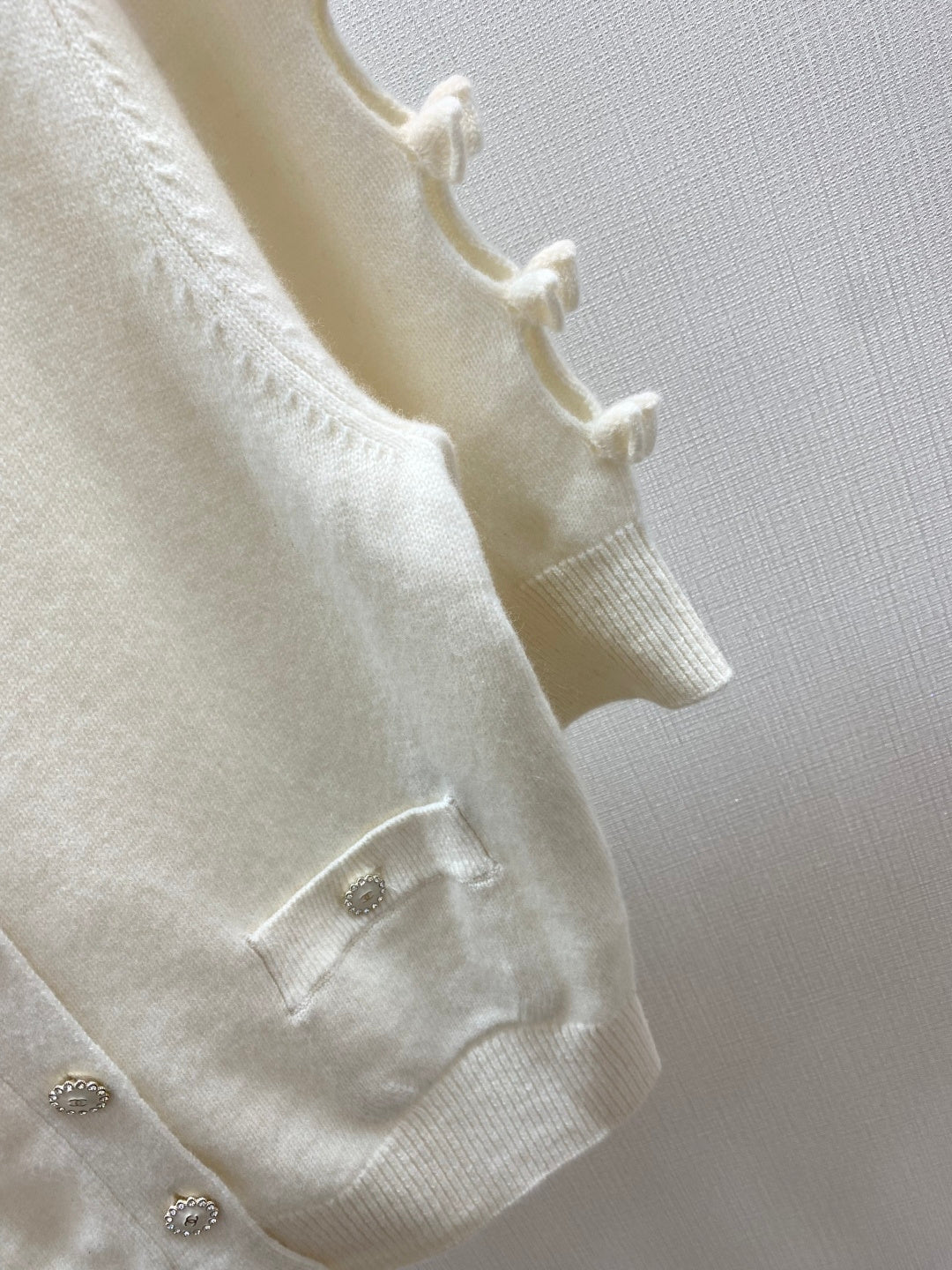 CHANEL 25S SHORT-SLEEVE ROUND-NECK KNIT CARDIGAN 317