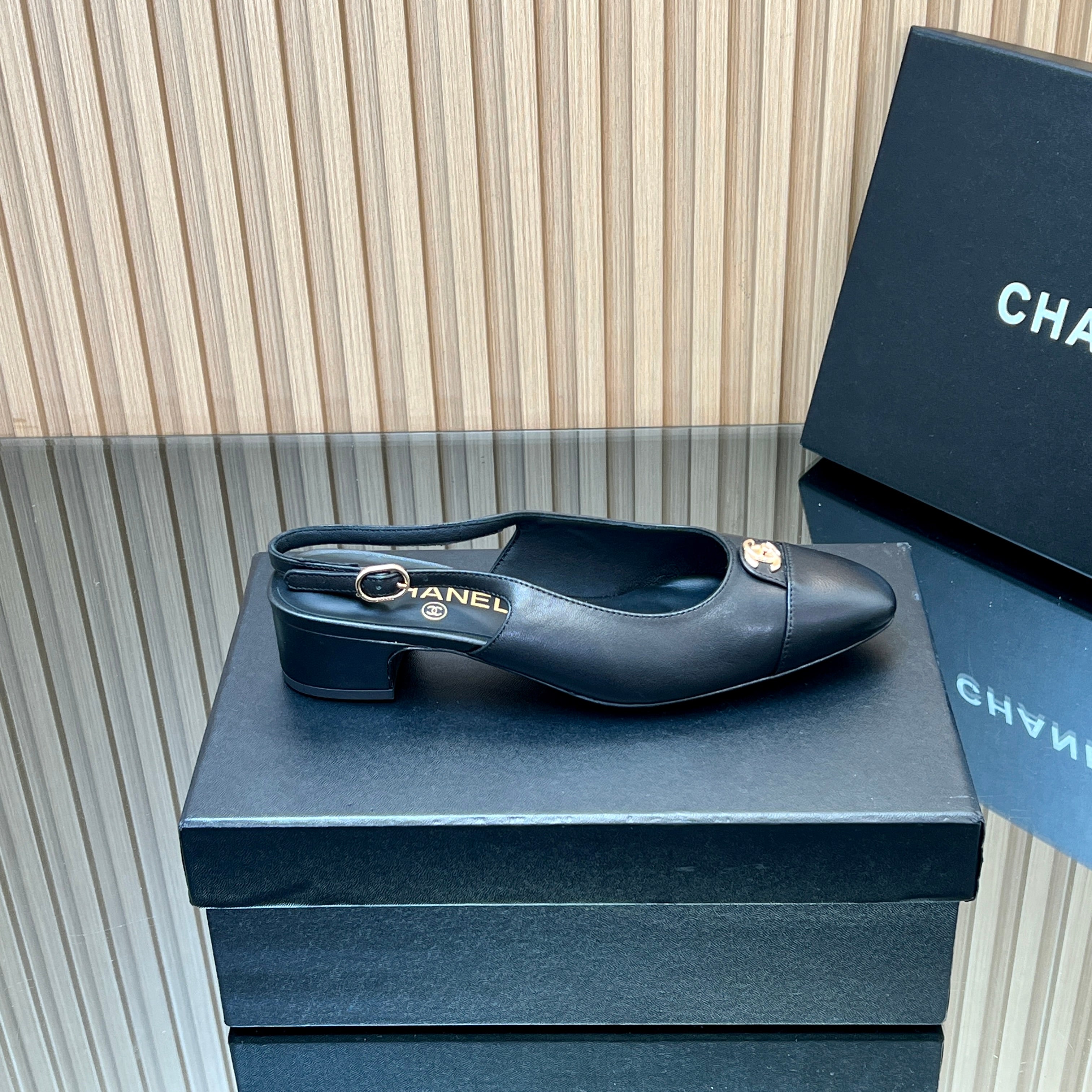 CHANEL 25S SLINGBACK SHOE 45MM IN BLACK CALFSKIN GOLD HARDWRE