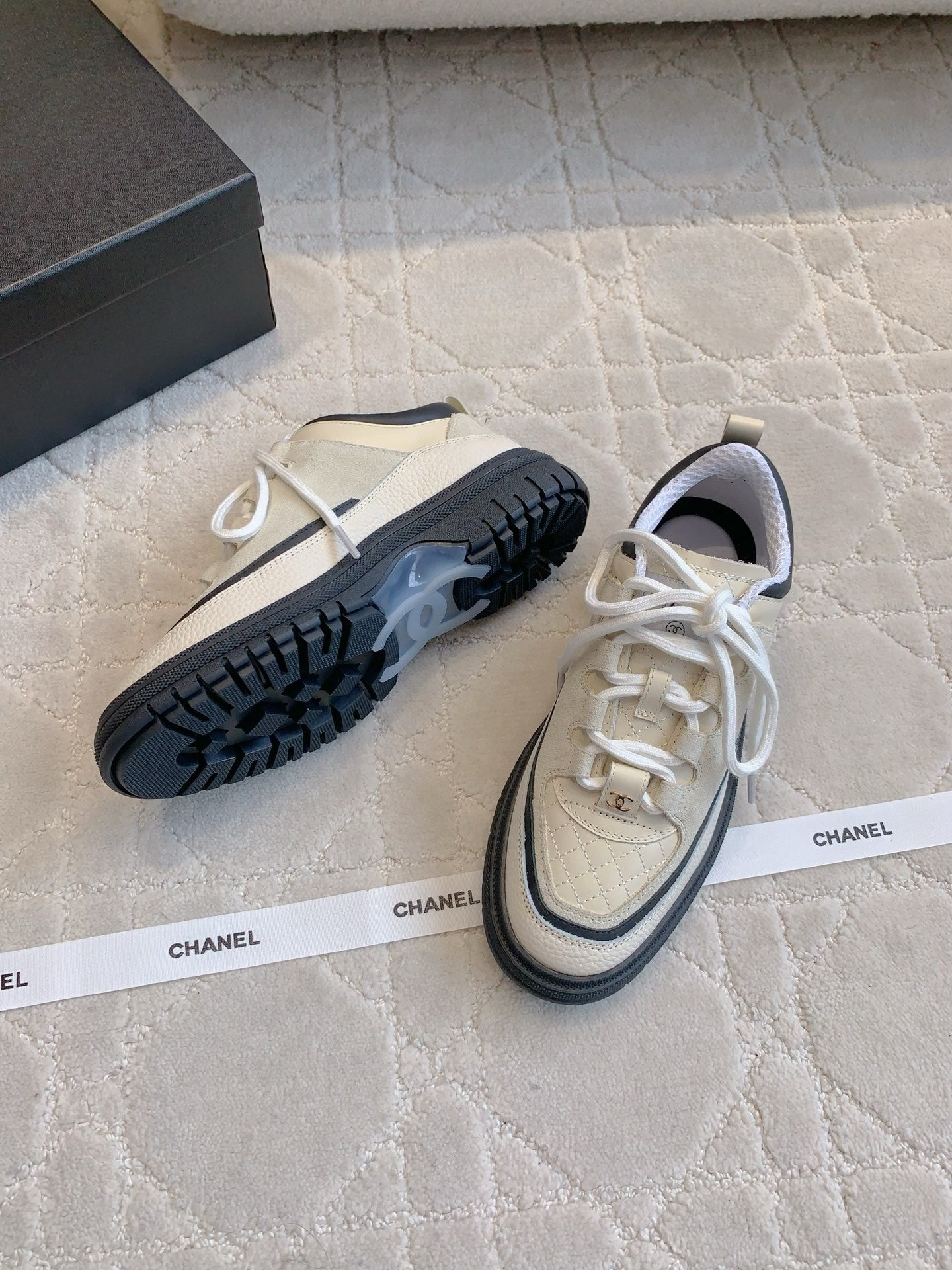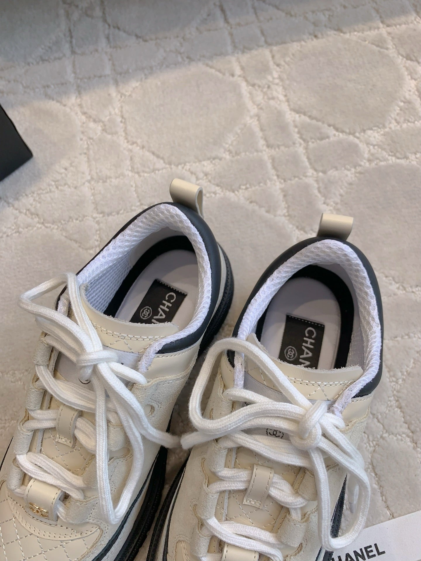 CHANEL 25S TRAINERS 40MM IN WHITE AND BLACK CALFSKIN