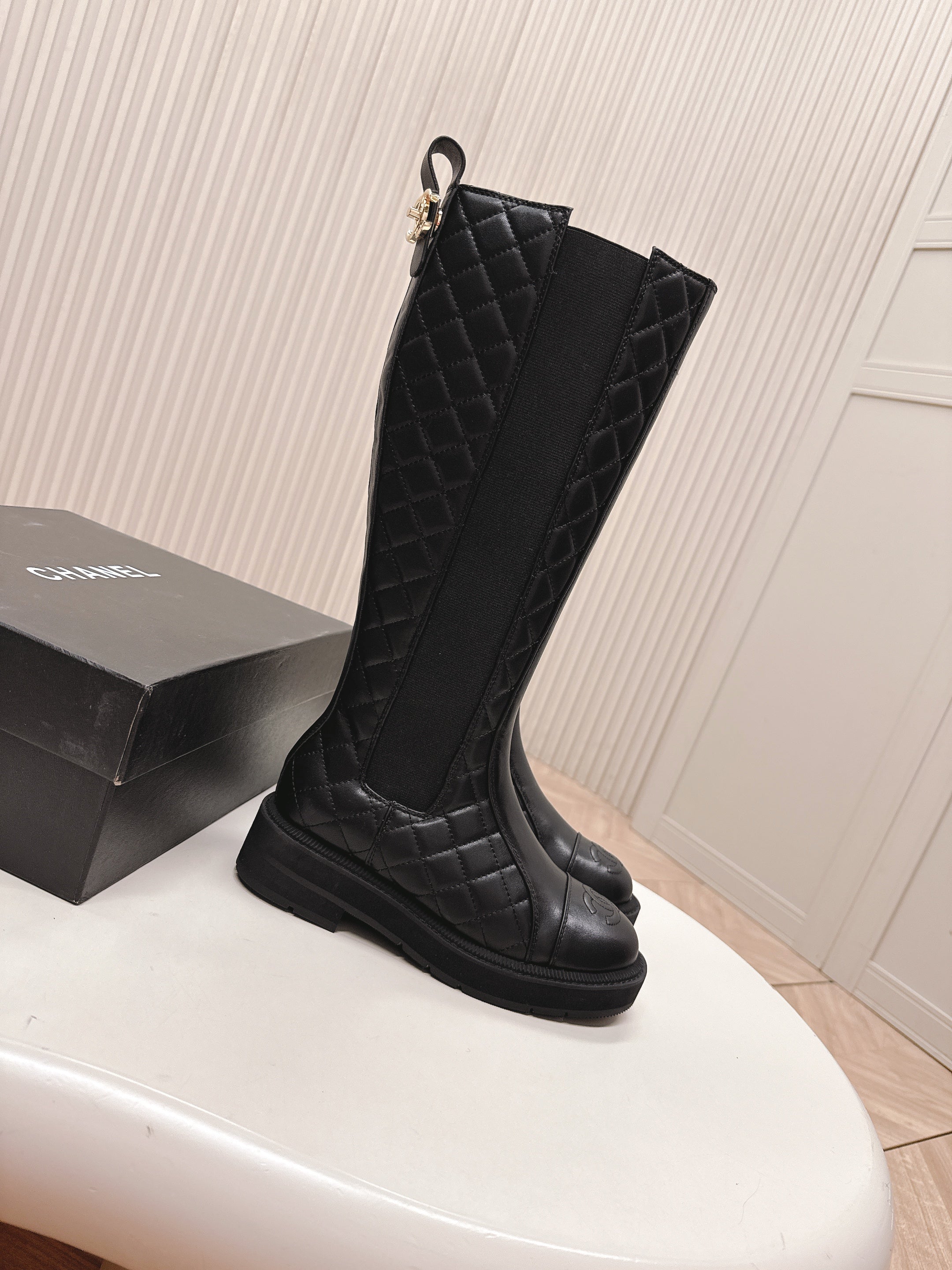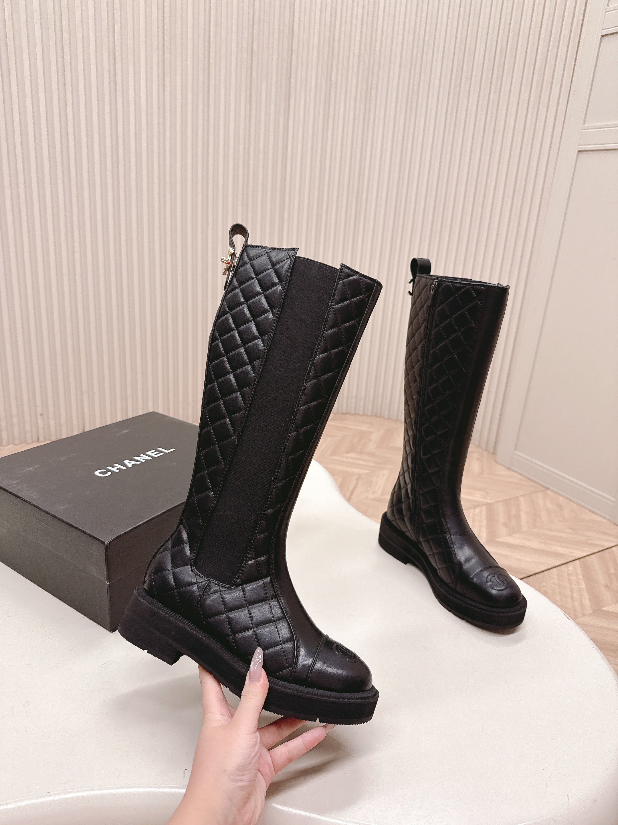 CHANEL KNEE-HIGH BOOTS 25S IN BLACK LAMBSKIN