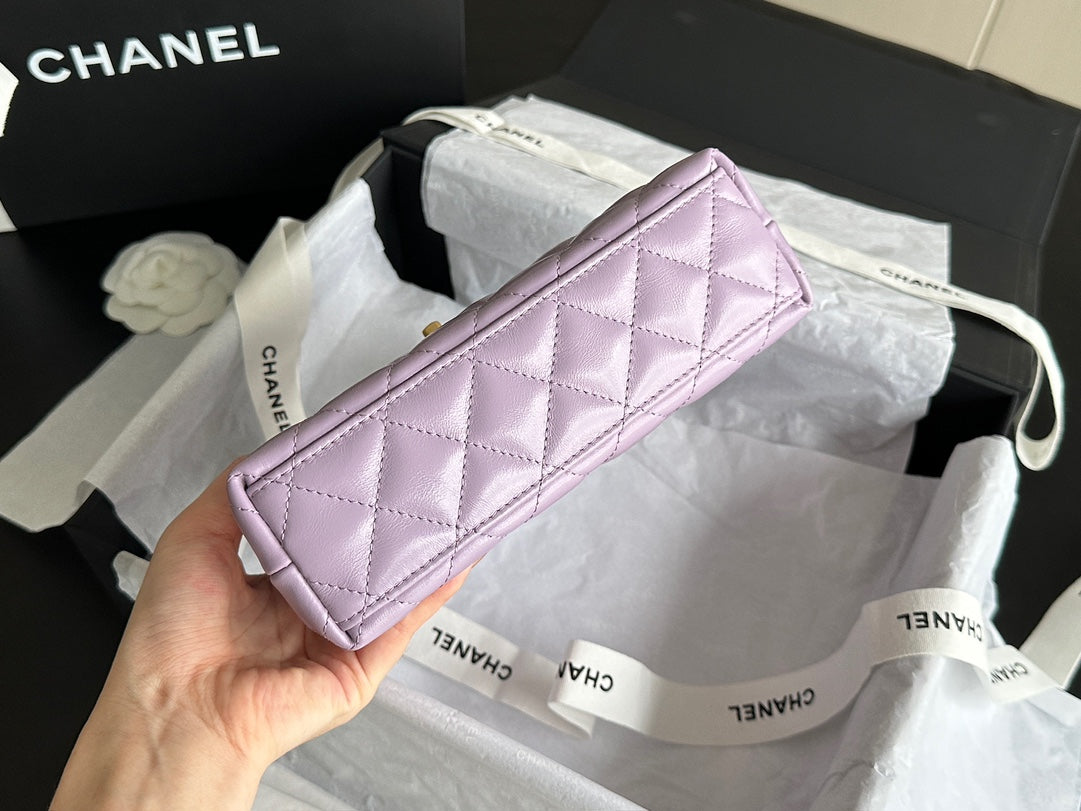 CHANEL VINTAGE KELLY 25S 19 CM IN PURPLE LAMBSKIN WITH GOLD HARDWARE