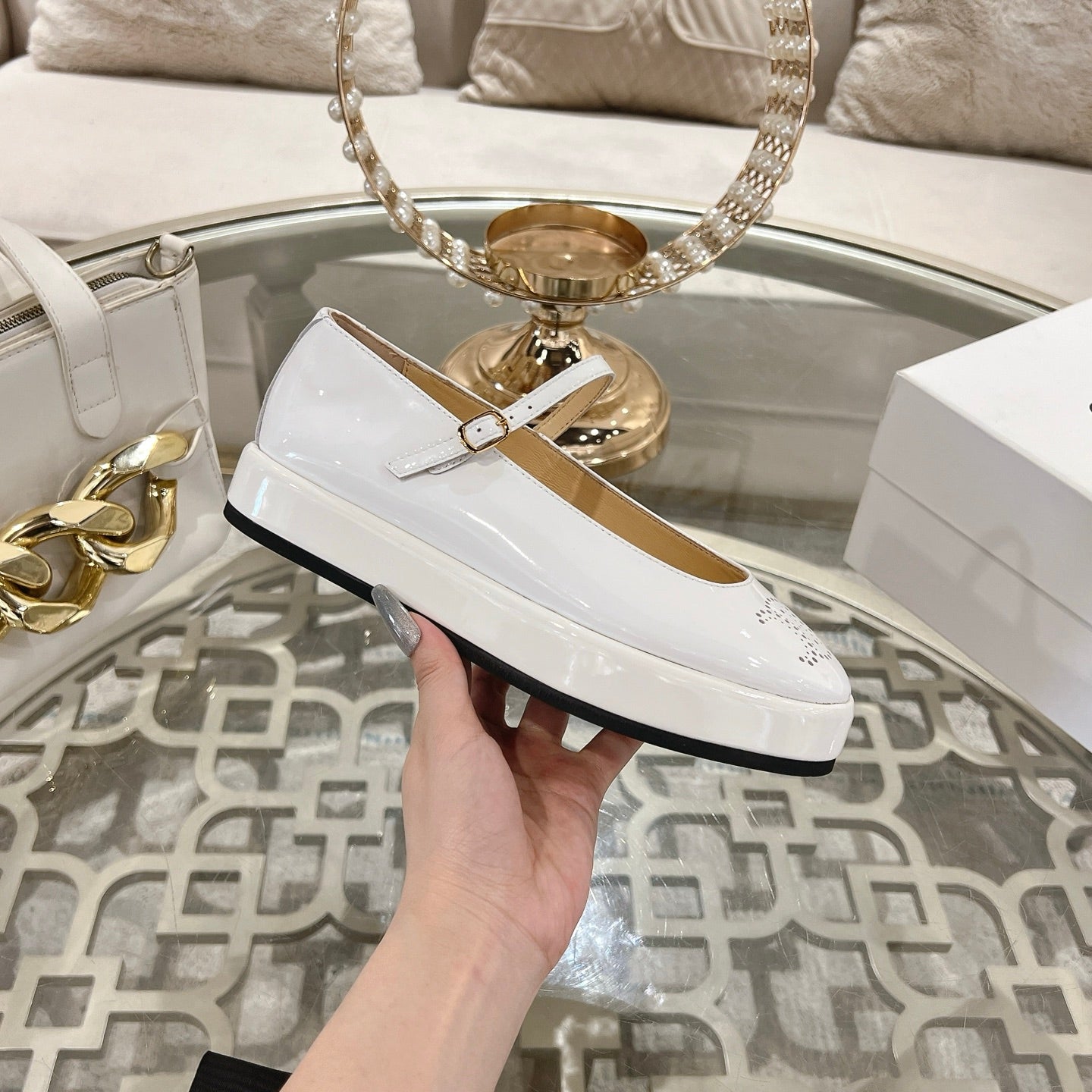 CLARA WEDGE MARY-JANE BALLERINA IN WHITE PATENT CALFSKIN