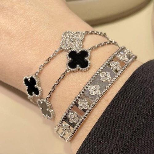 CLOVER BRACELET 5 MOTIF ONYXS DIAMOND