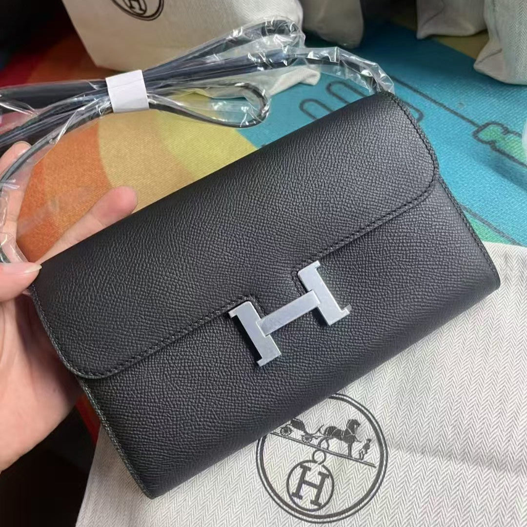 CONSTANCE SHOULDER BAG IN BLACK CALFSKIN