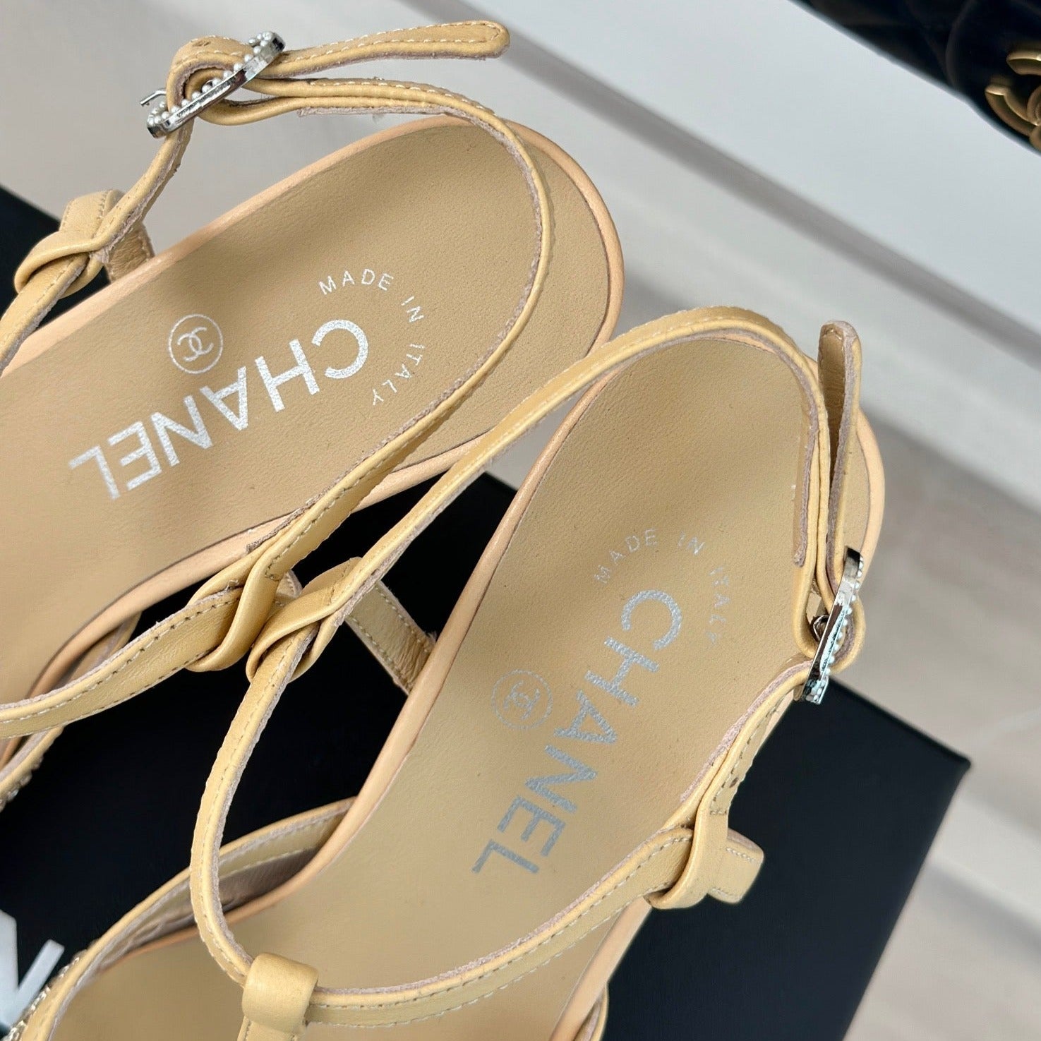• Upper made of imported lambskin/crystals