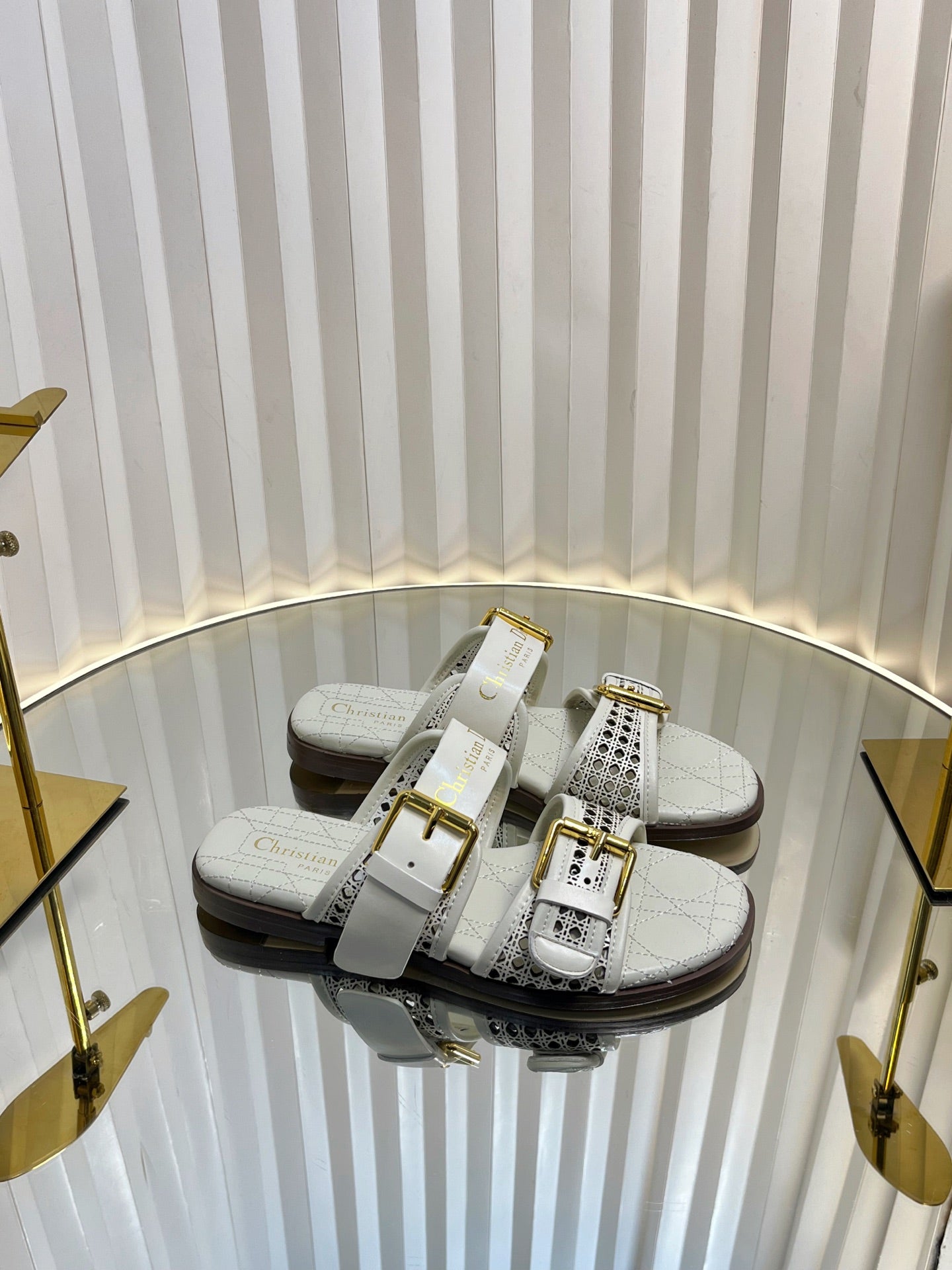 D-AVENUE SLIDES 25S IN WHITE CALFSKIN MICRO CANNAGE MOTIF