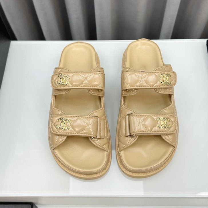 dad sandals beige patent lambskin mules