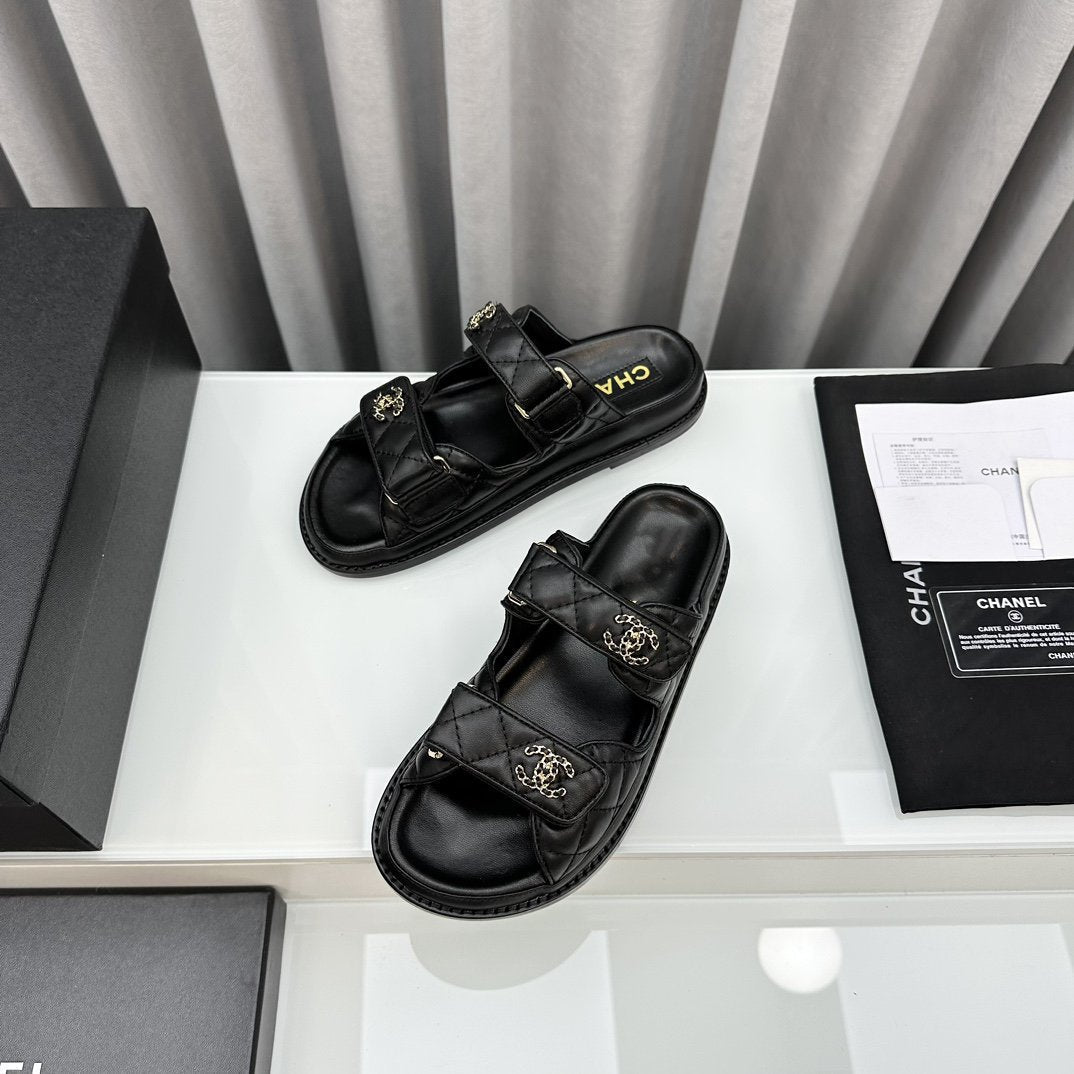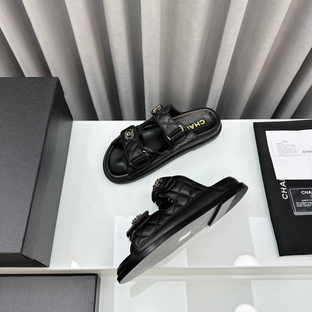 dad sandals black patent interwoven leather cc