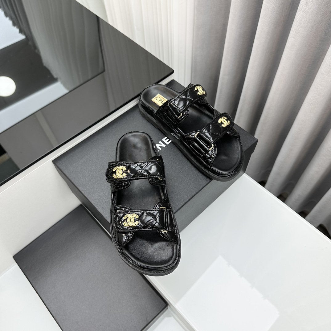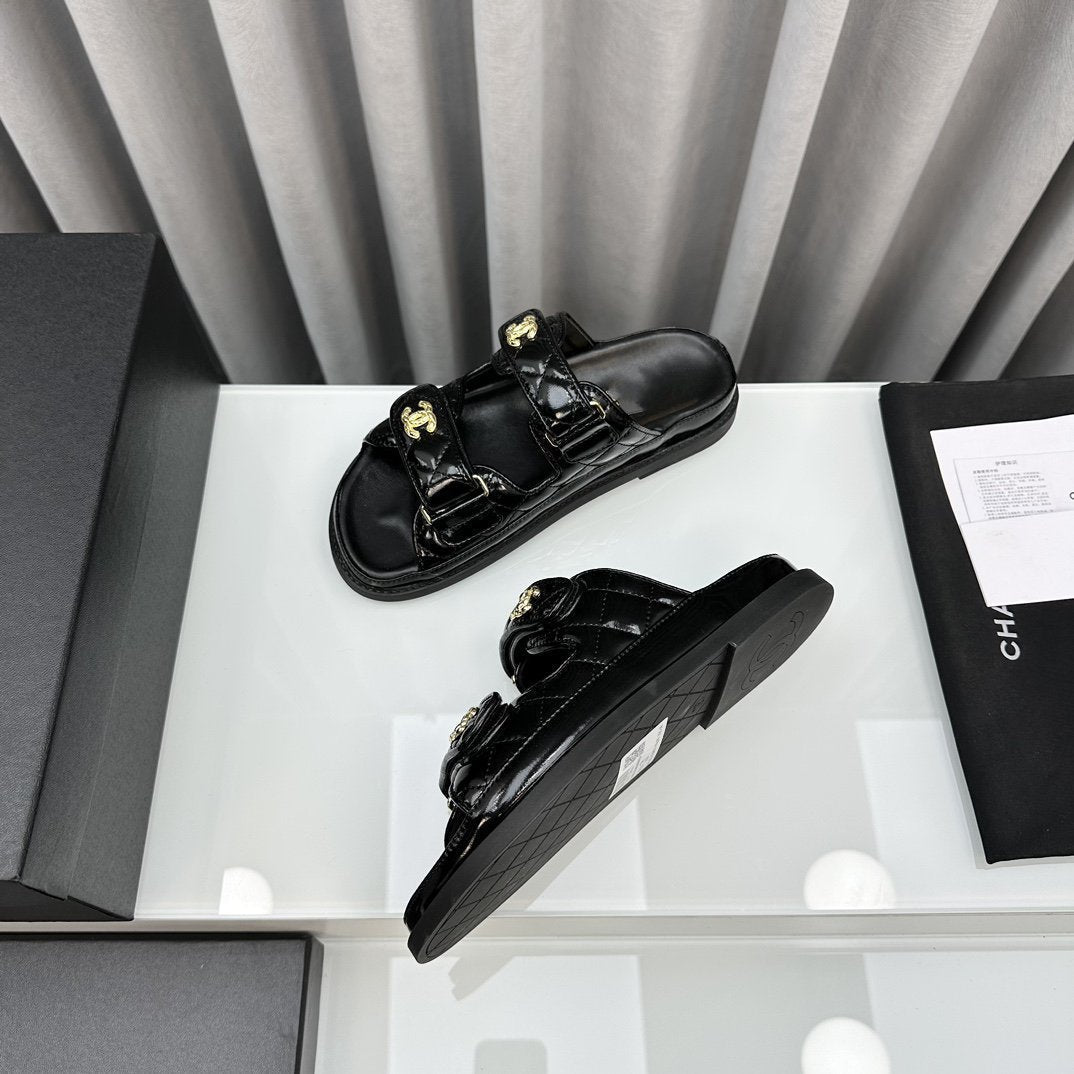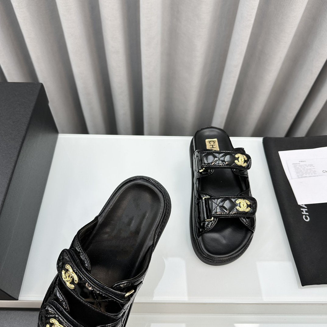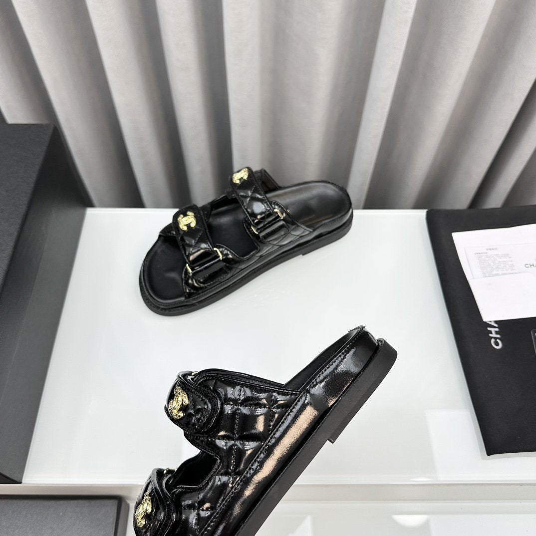 dad sandals black patent lambskin mules