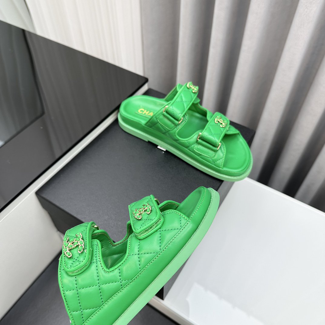dad sandals greean lambskin mules