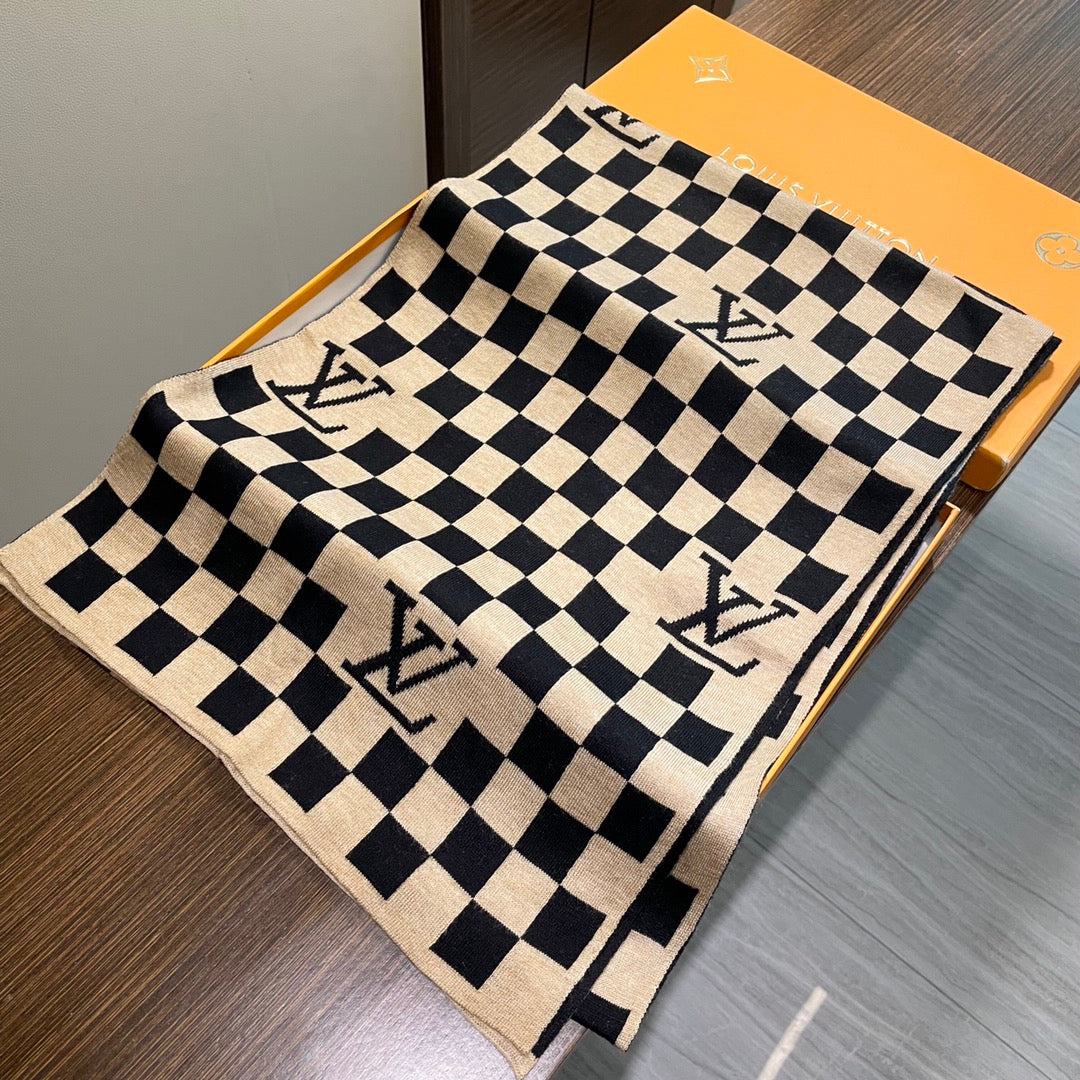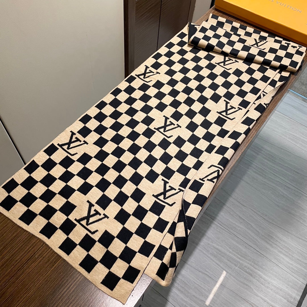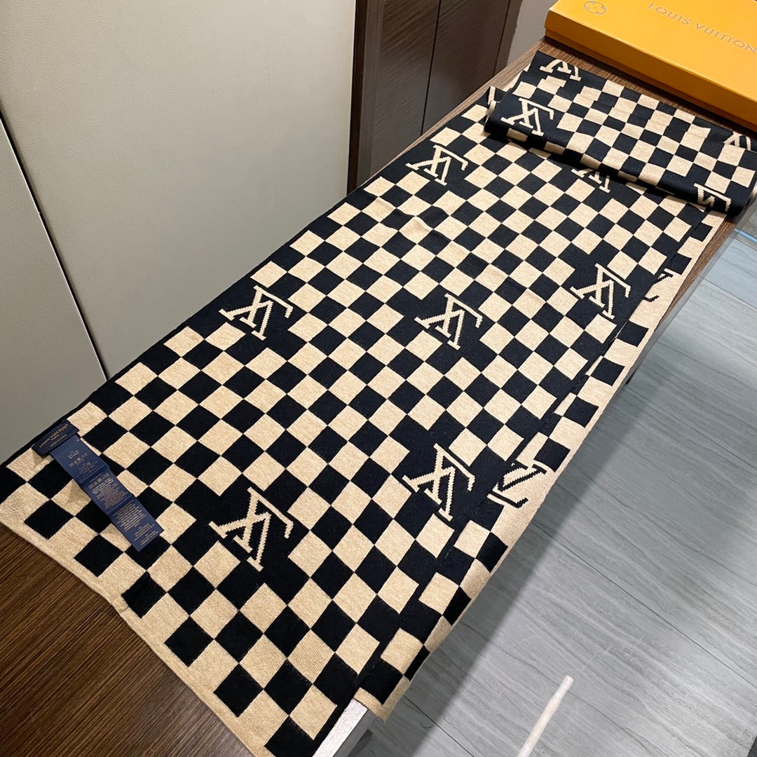 DAMIER SCARF 200 CM IN BLACK MIX TAN BEIGE CASHMERE 388194