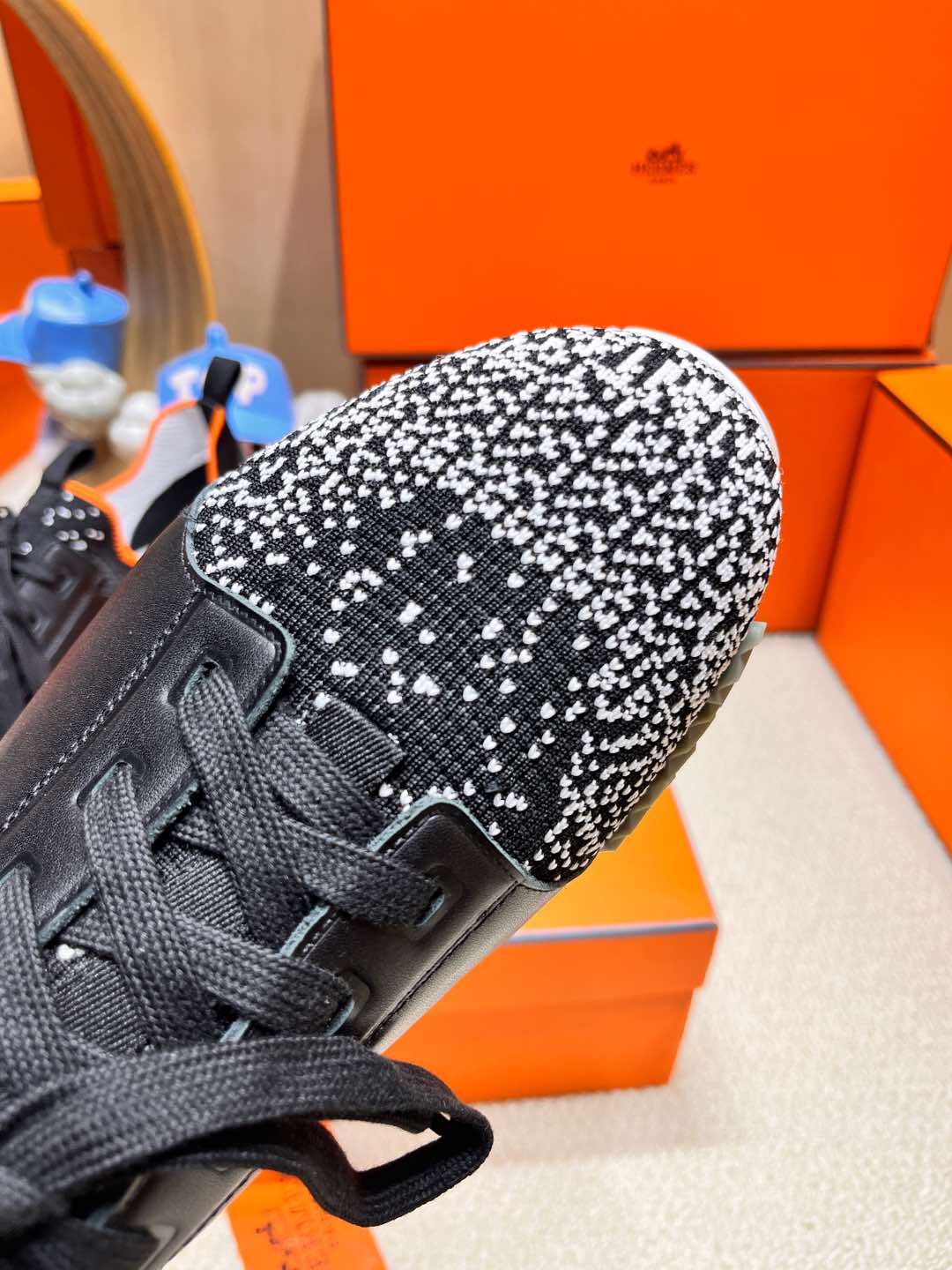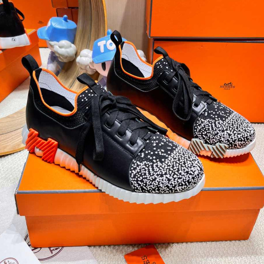 DEPART SLIP-ON SNEAKER IN WHITE MIX BLACK KNIT AND CALFSKIN
