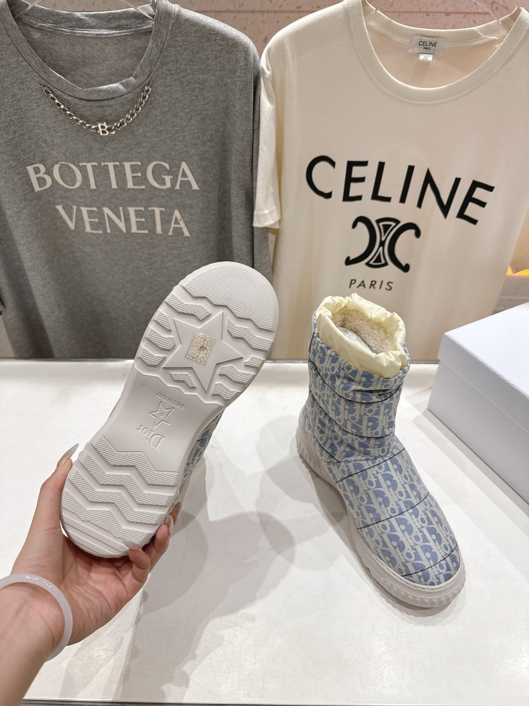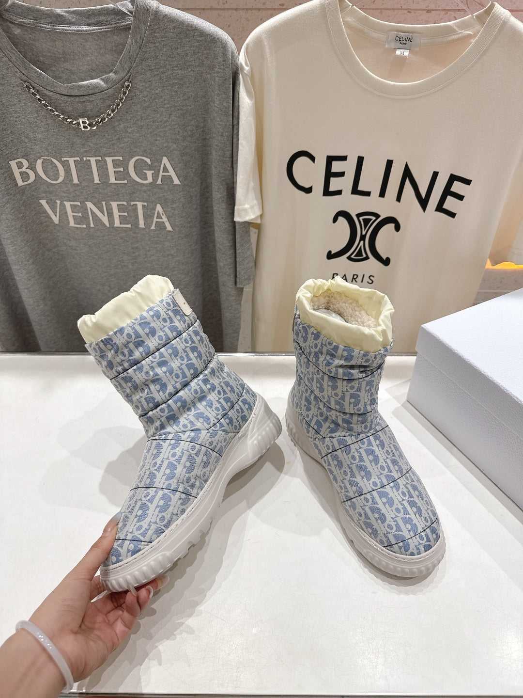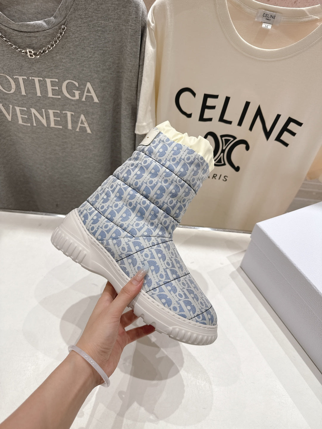 DIOR 25S ANKLE BOOTS IN BLUE FEATHER