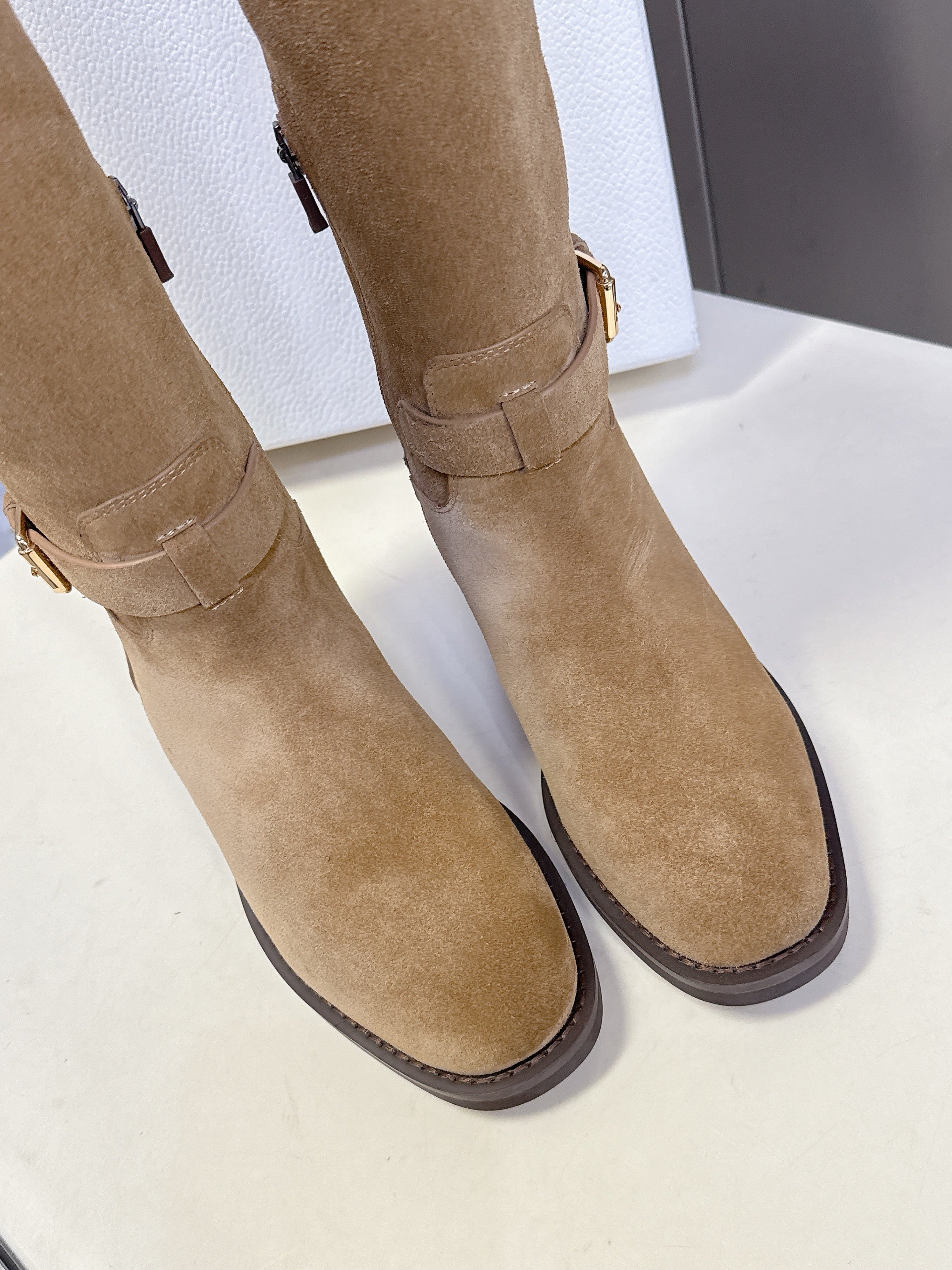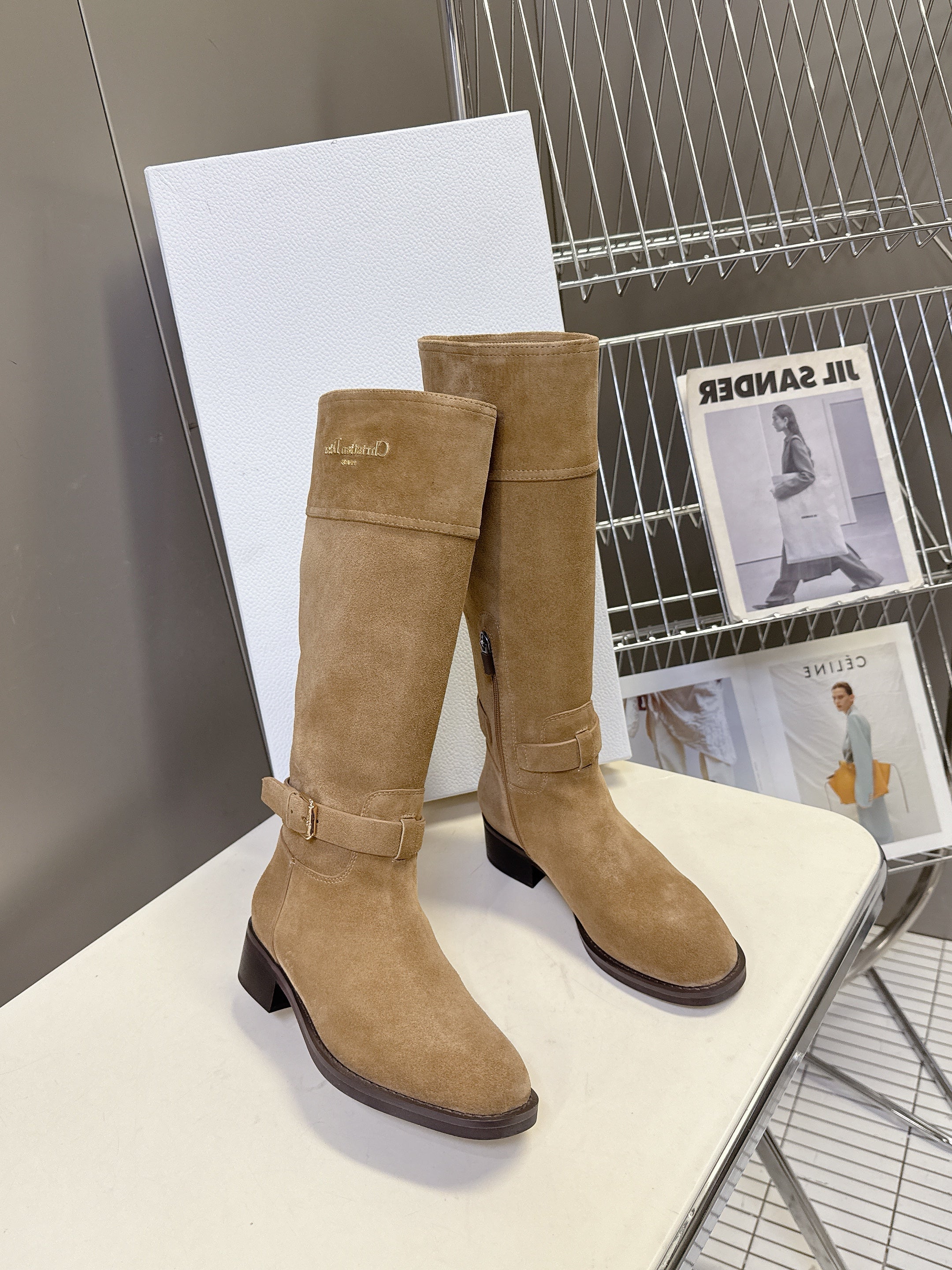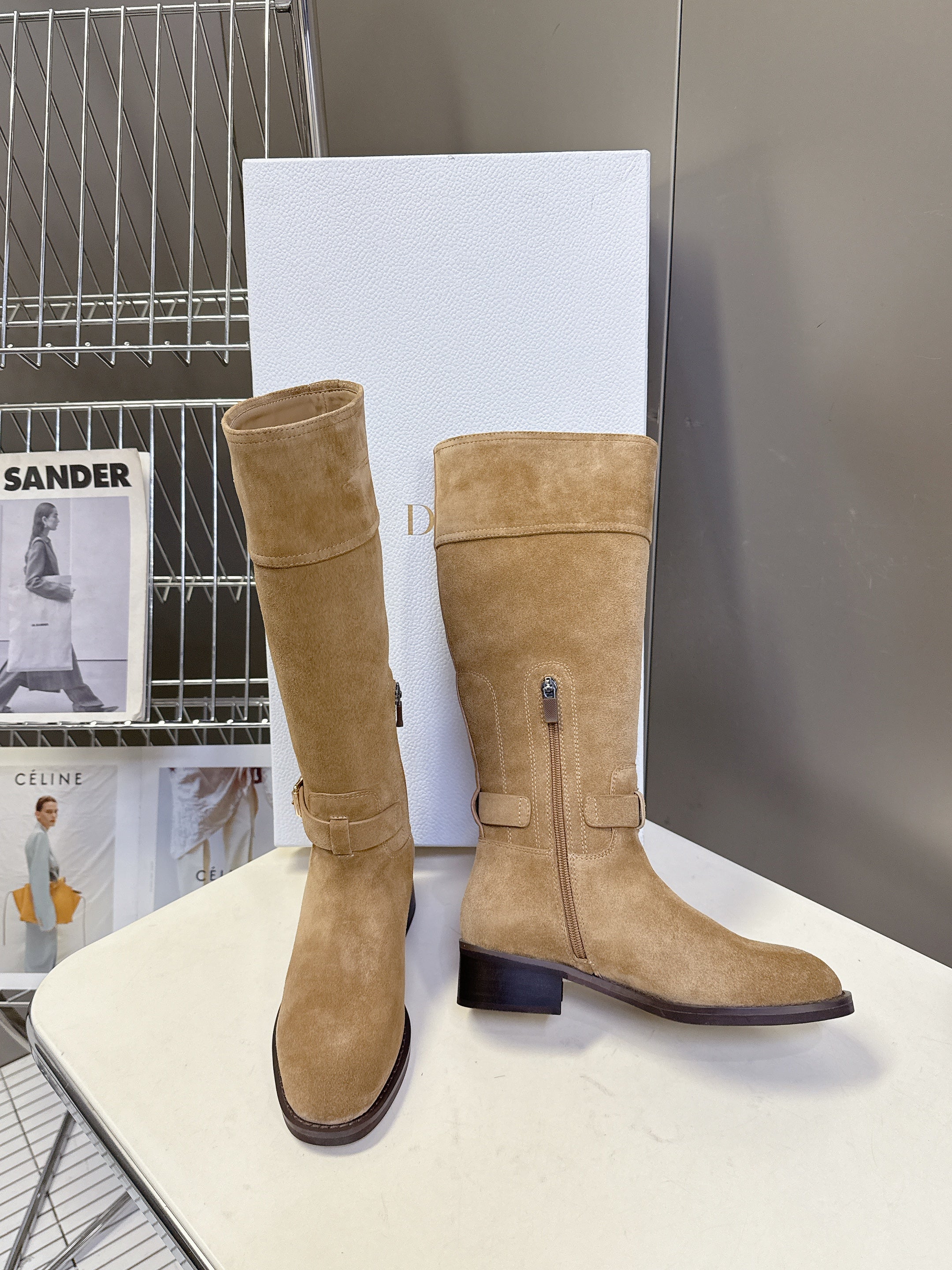 DIOR 25S BROWN HIGH BOOTS IN BEIGE SUEDE
