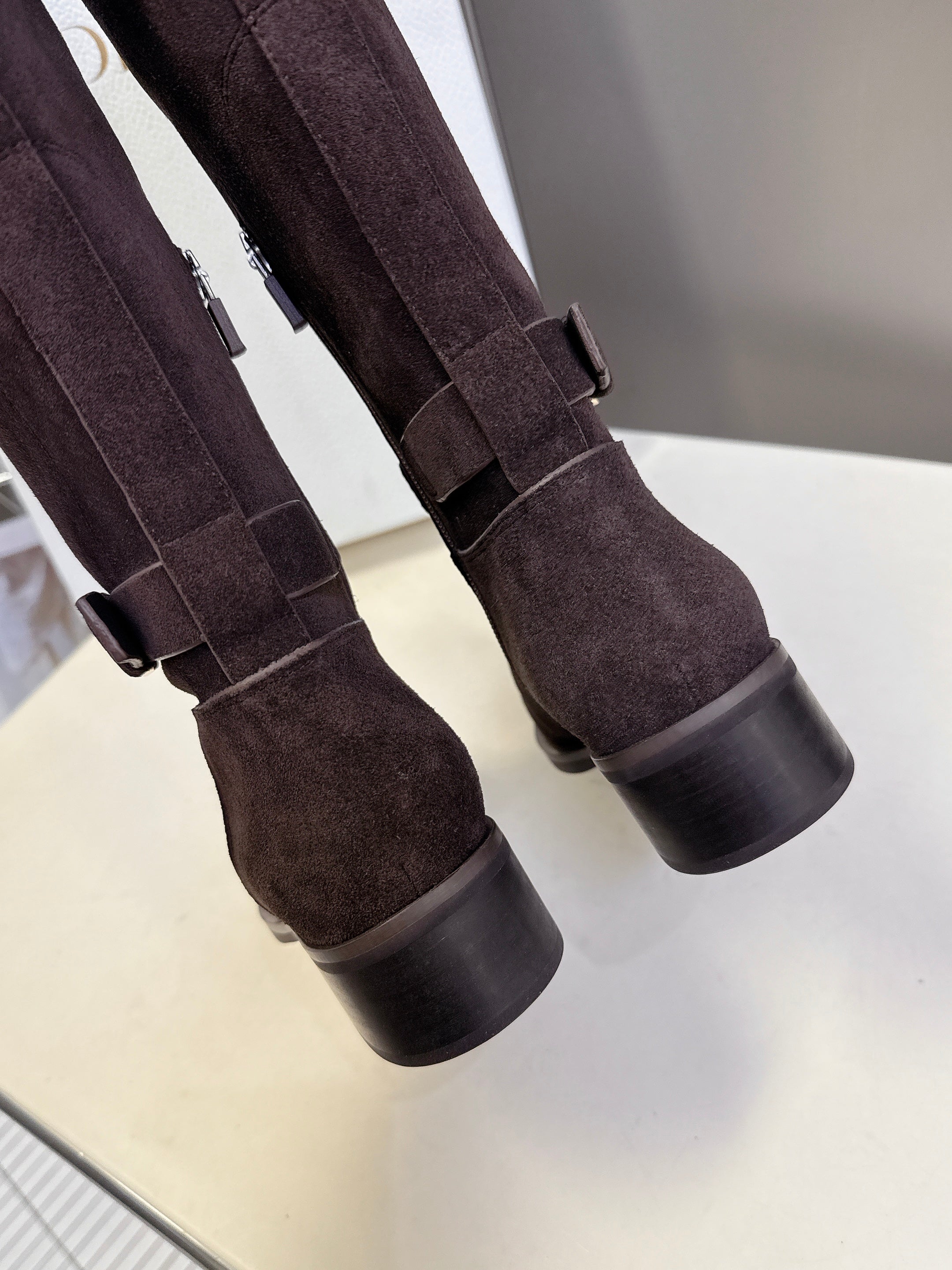 DIOR 25S BROWN HIGH BOOTS IN DARK BROWN SUEDE