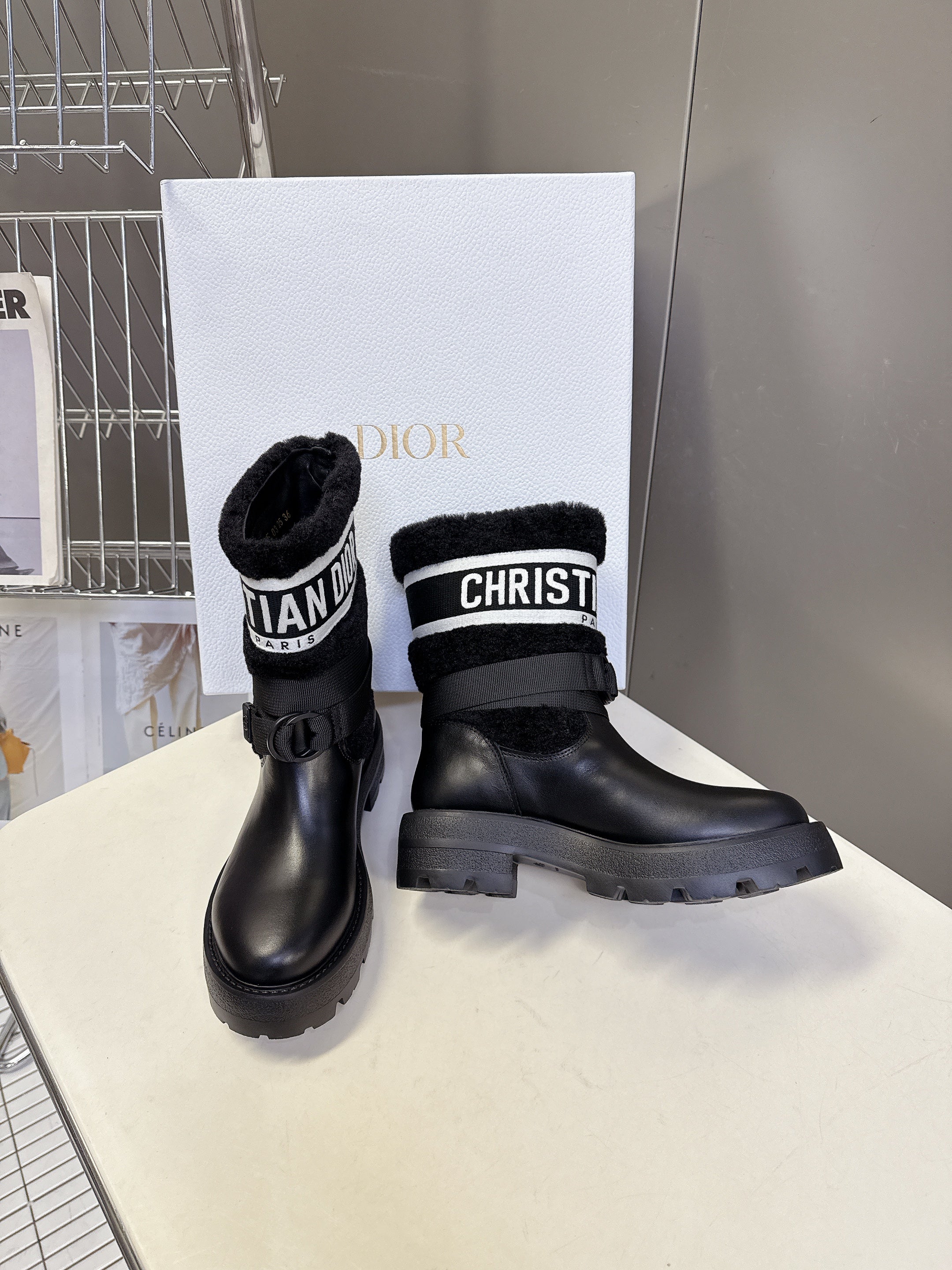 DIOR 25S D-MAJOR ANKLE BOOTS IN BLACK LAMBSKIN AND WOOL