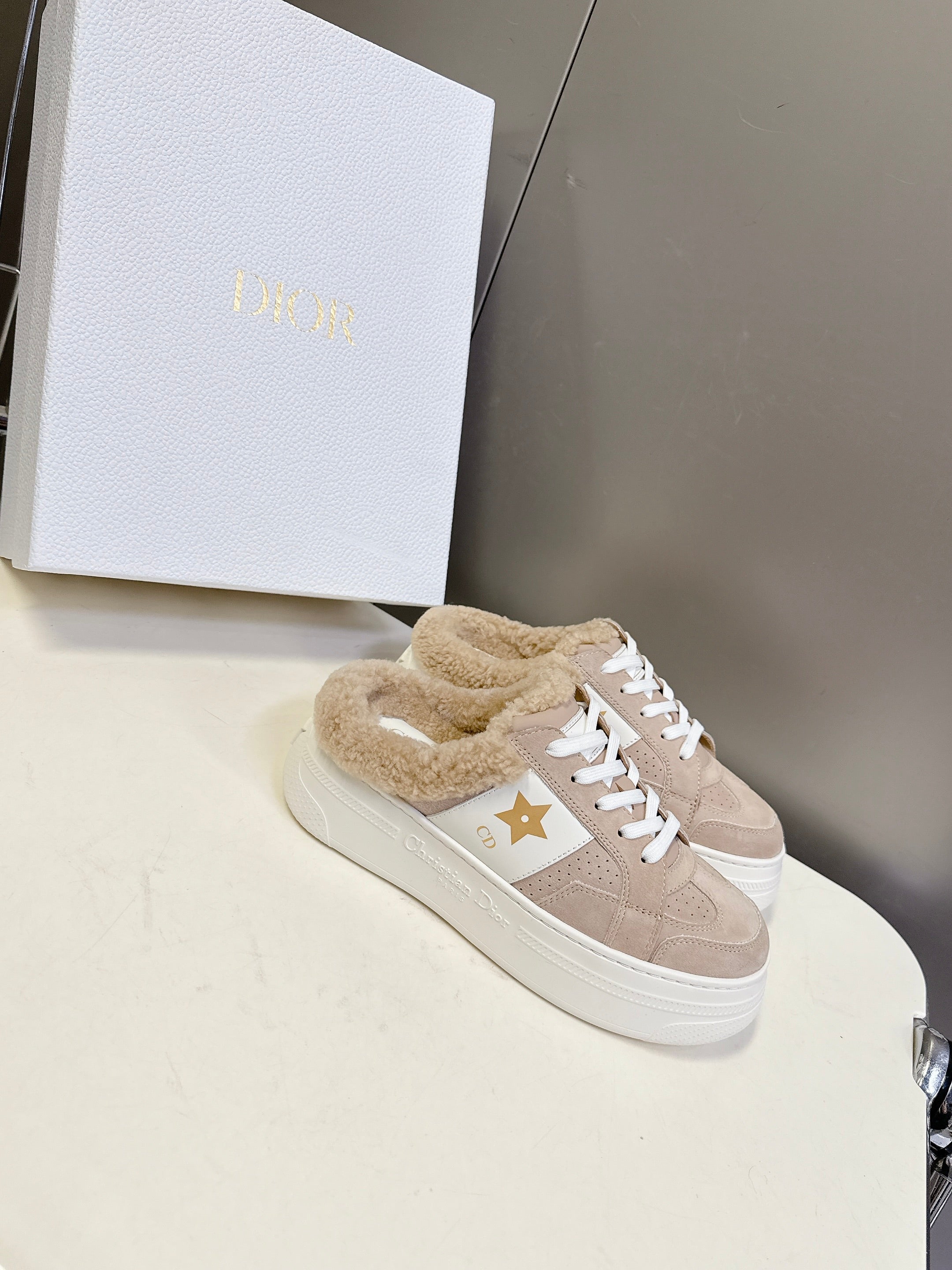 DIOR 25S DIOR STAR SNEAKERS 40 MM IN NUDE PINK SUEDE AND WOOL