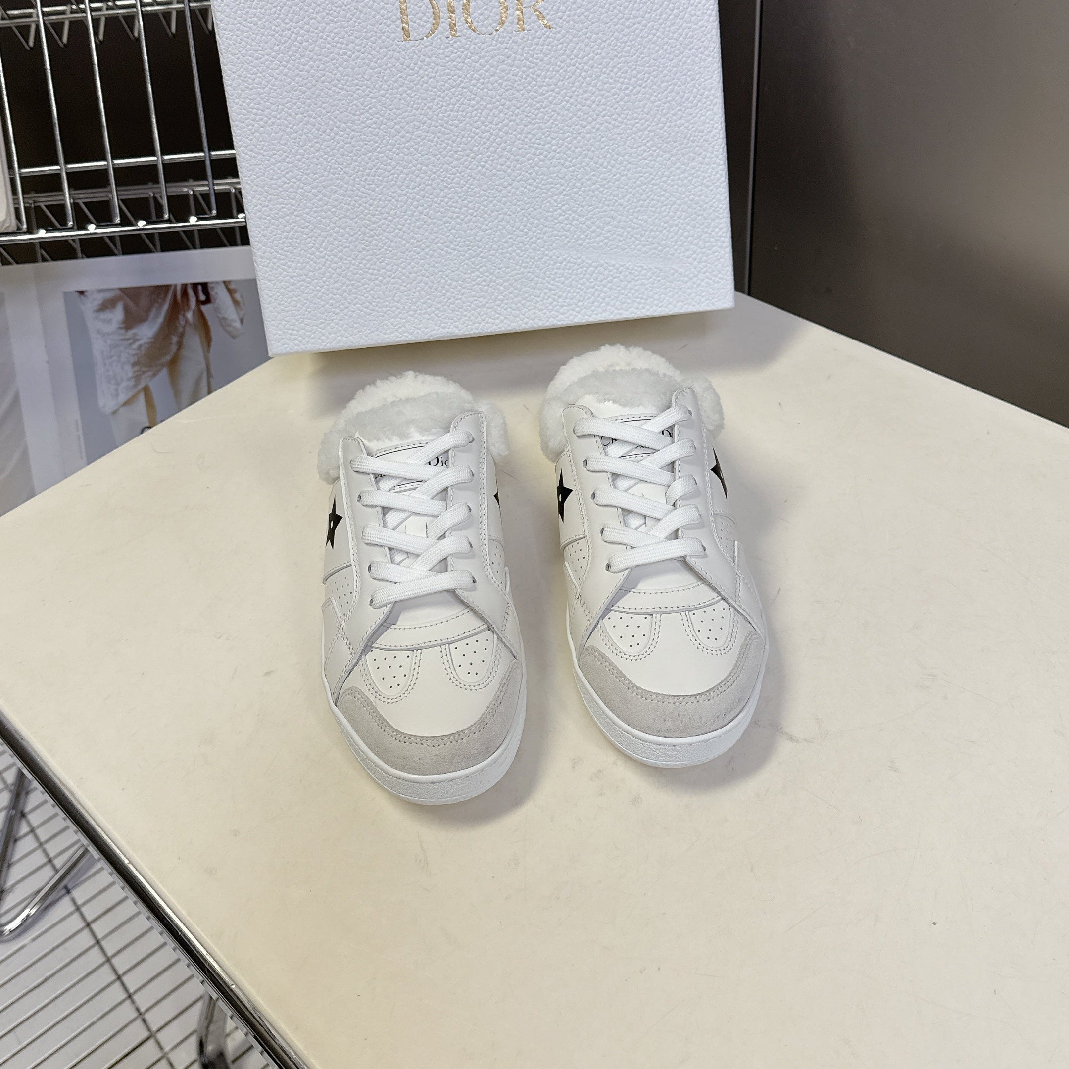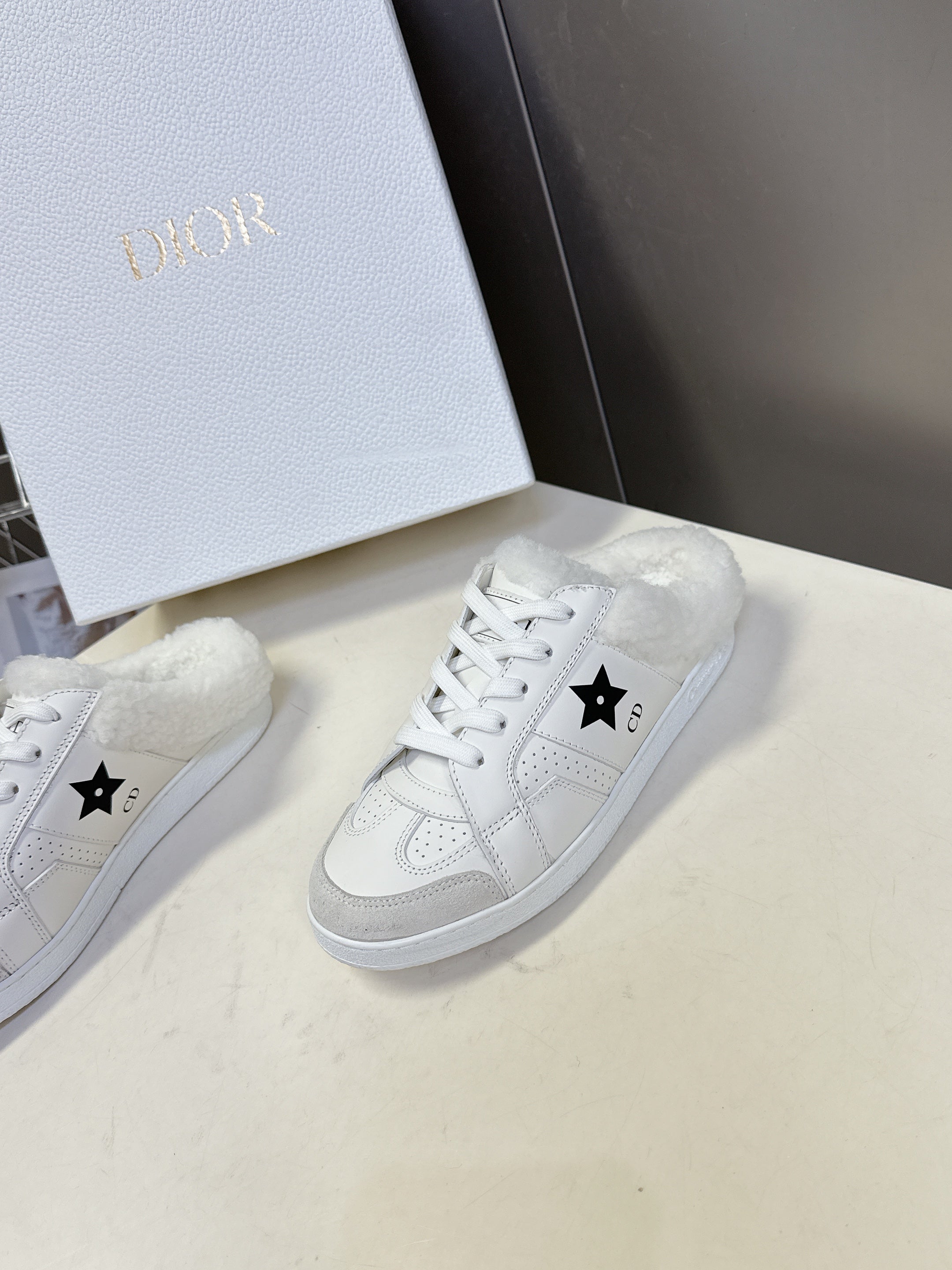 DIOR 25S DIOR STAR SNEAKERS IN WHITE LAMBSKIN AND WOOL