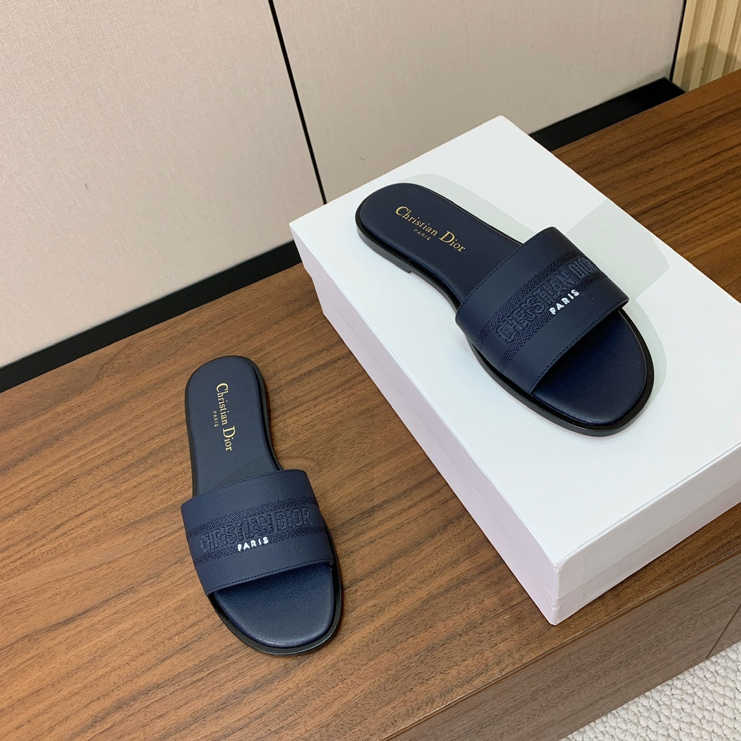 DIOR 25S DWAY SLIDE IN DEEP NAVY BLUE CALFSKIN