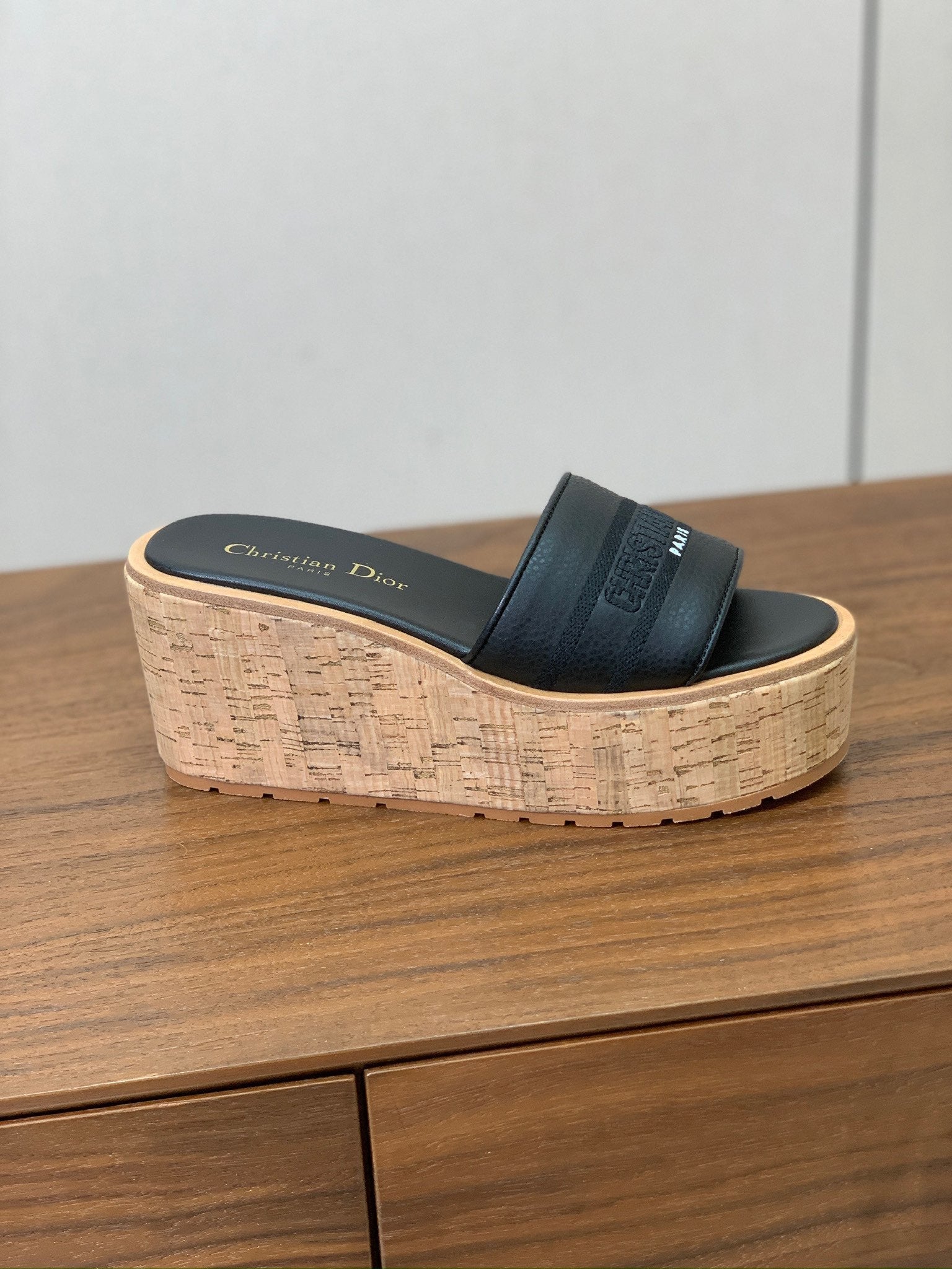 DIOR 25S DWAY WEDGE SLIDE 90 MM IN BLACK CALFSKIN