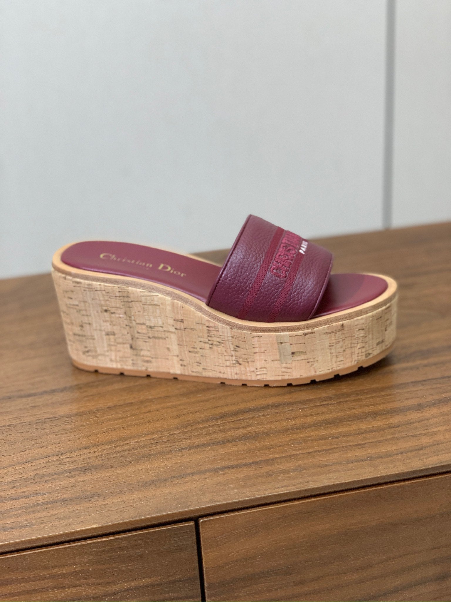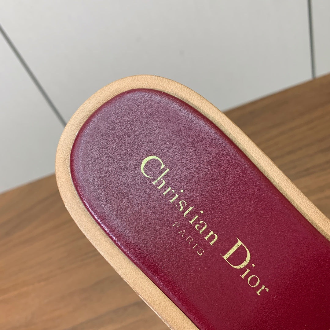DIOR 25S DWAY WEDGE SLIDE 90 MM IN DARK RED CALFSKIN