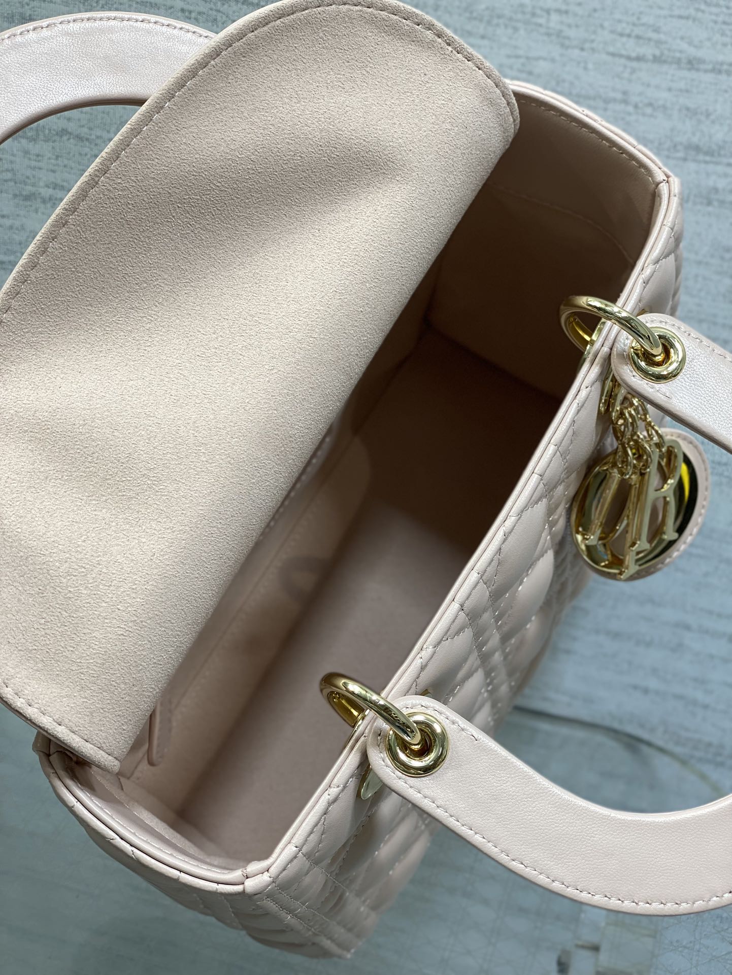 DIOR 25S MEDIUM LADY BAG 24 IN PINK CALFSKIN GOLD HARDWRE