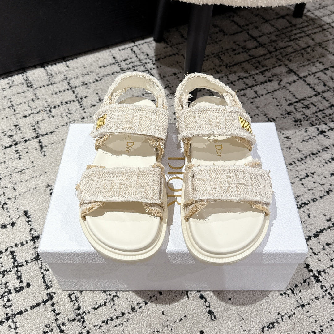 DIOR BACK-STRAP SANDALS 25S IN CREAM WHITE TWEED AND CALFSKIN WITH GOLD HARDWARE