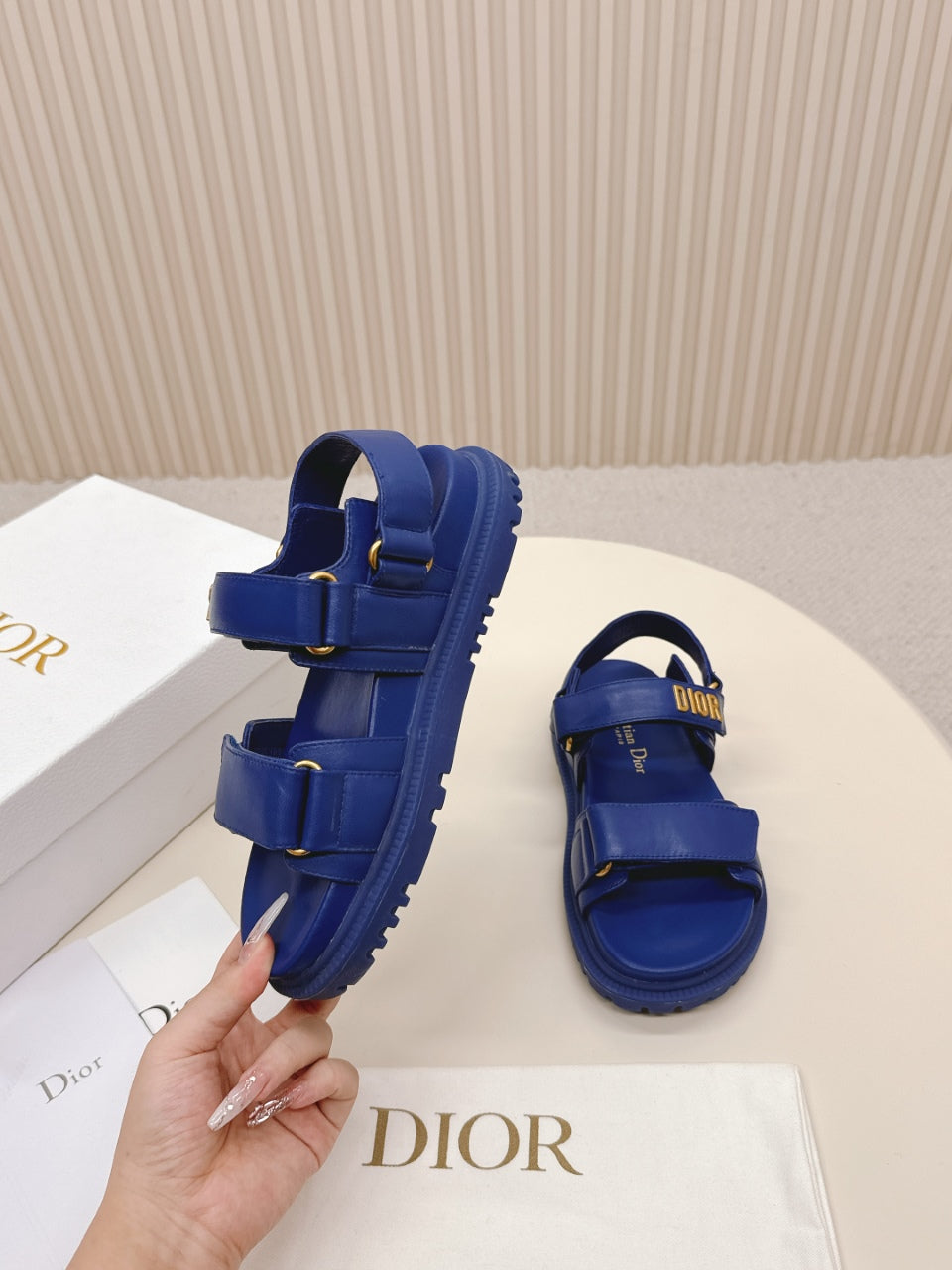 DIOR BACK-STRAP SANDALS 25S IN NAVY BLUE CALFSKIN WITH GOLD HARDWARE