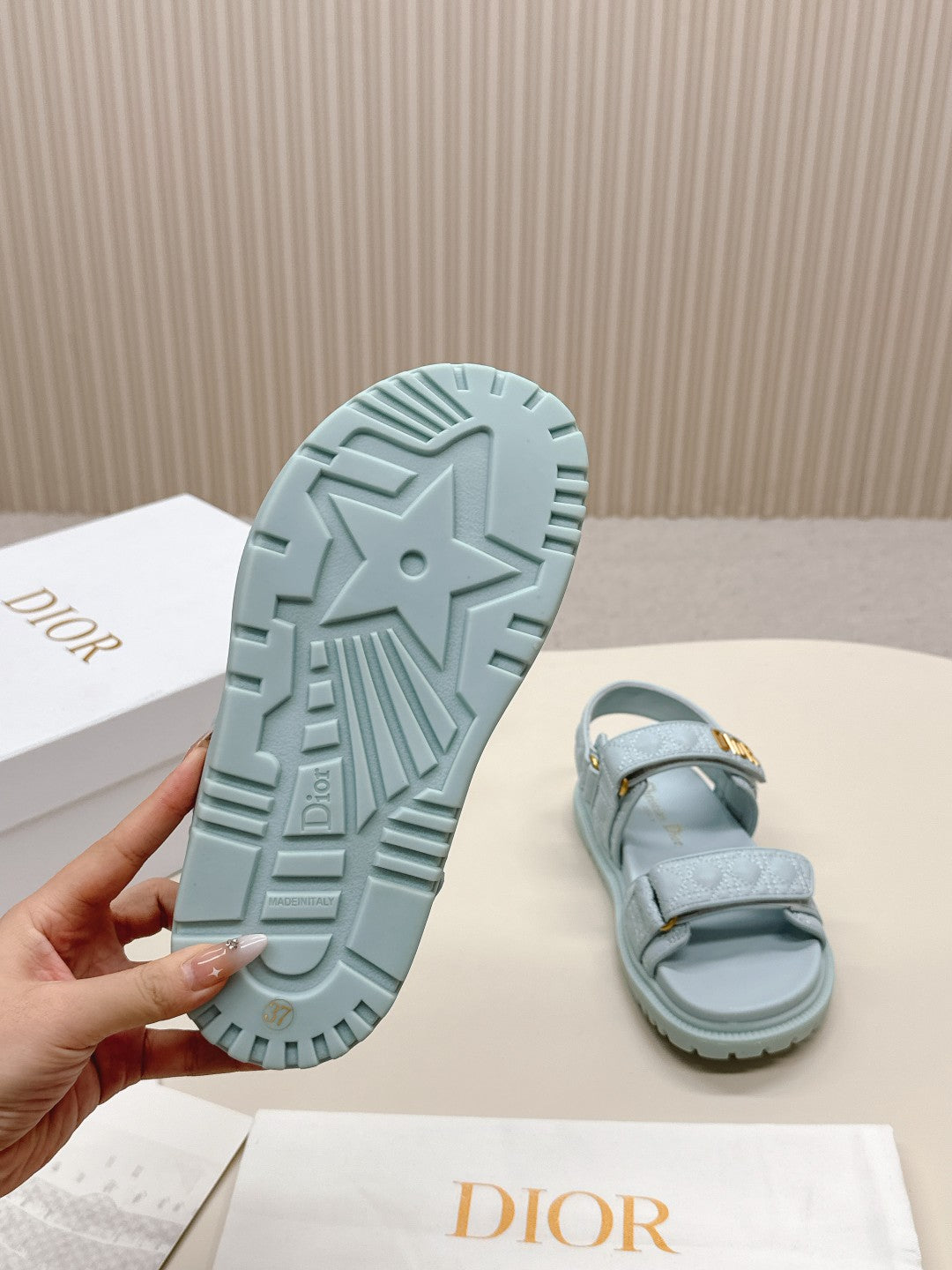 DIOR BACK-STRAP SANDALS 25S IN PASTEL BLUE CALFSKIN