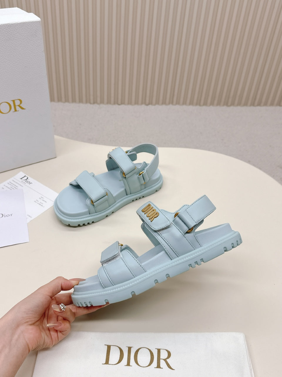 DIOR BACK-STRAP SANDALS 25S IN PASTEL BLUE CALFSKIN WITH GOLD HARDWARE