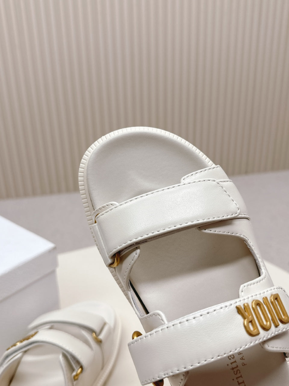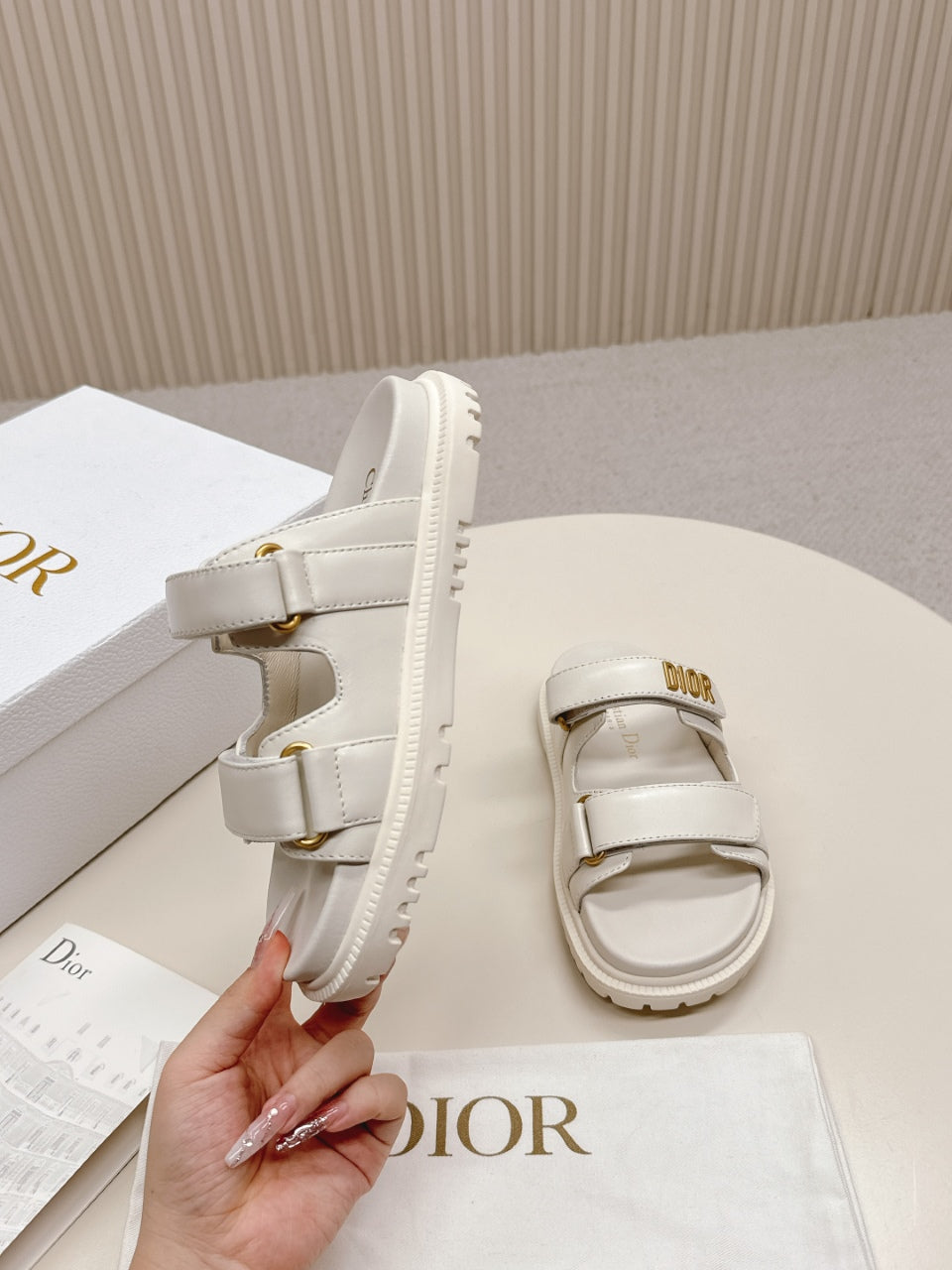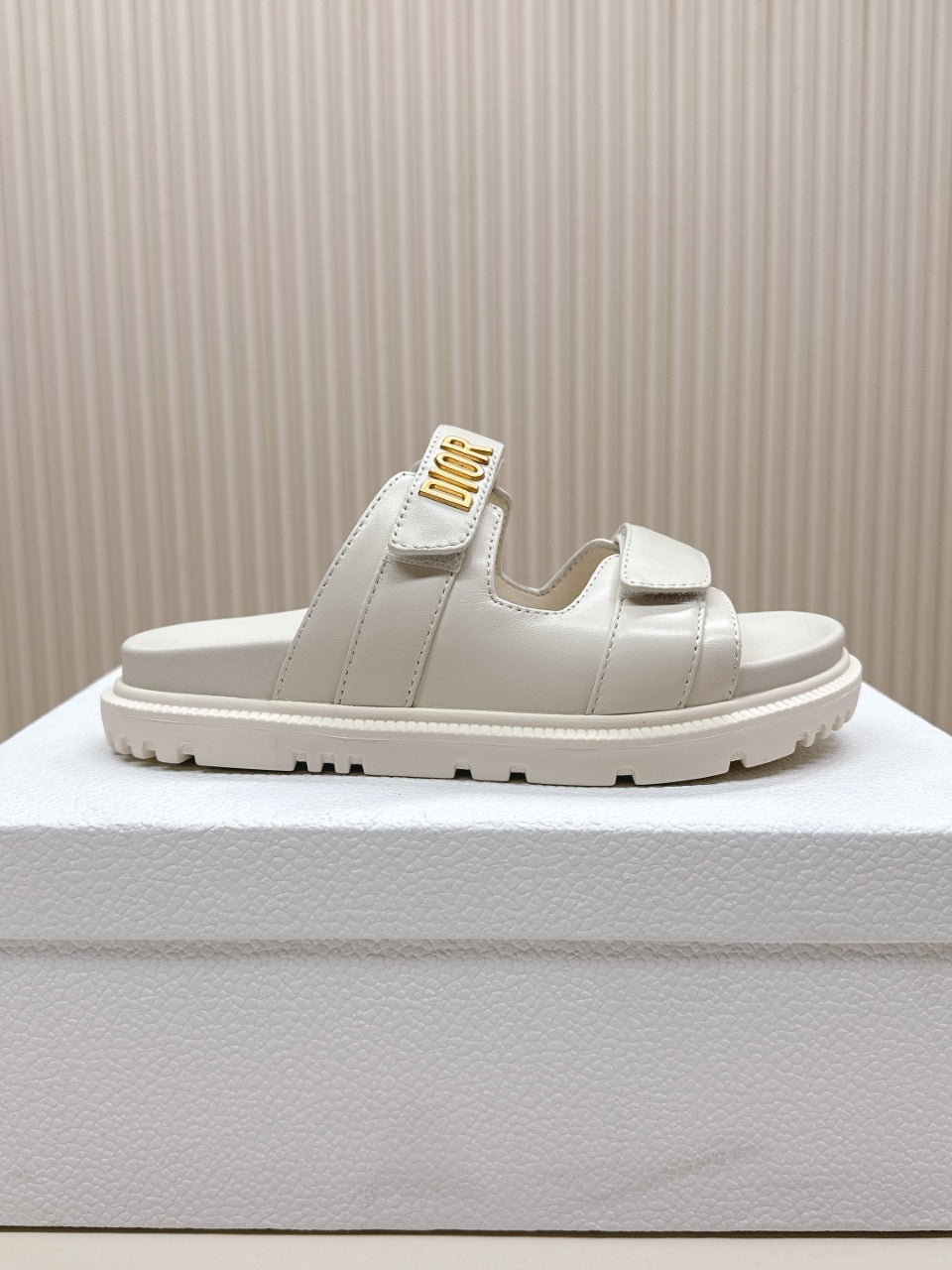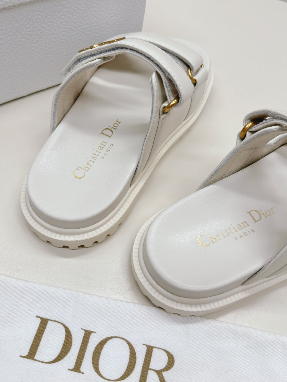 DIOR CLASSIC DOUBLE-STRAP SLIDES 25S IN CREAM WHITE CALFSKIN