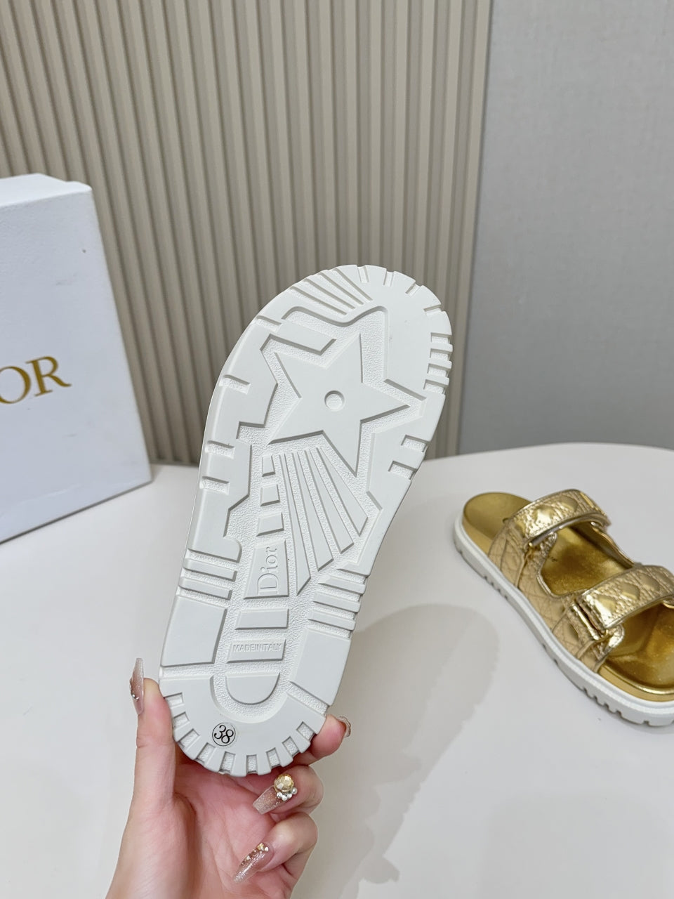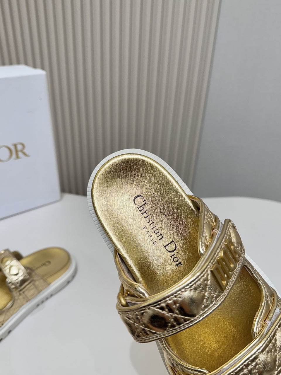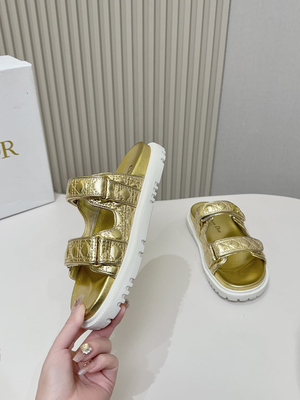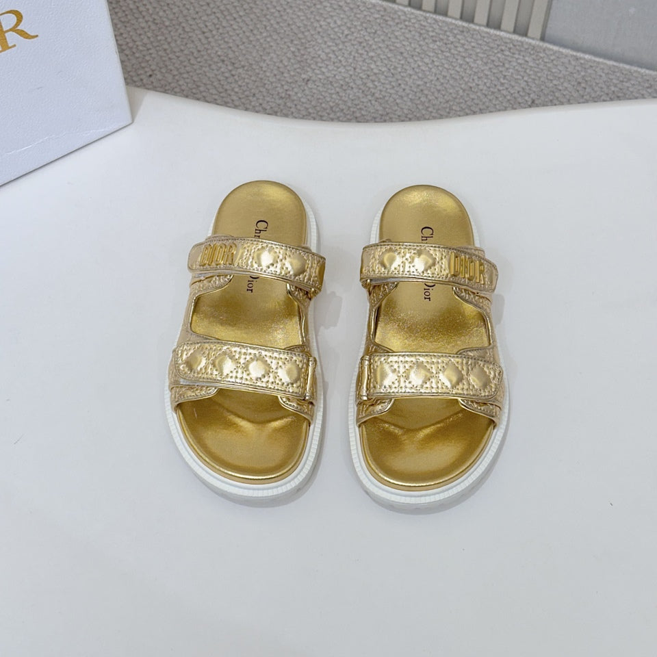 DIOR CLASSIC DOUBLE-STRAP SLIDES 25S IN GOLD CALFSKIN