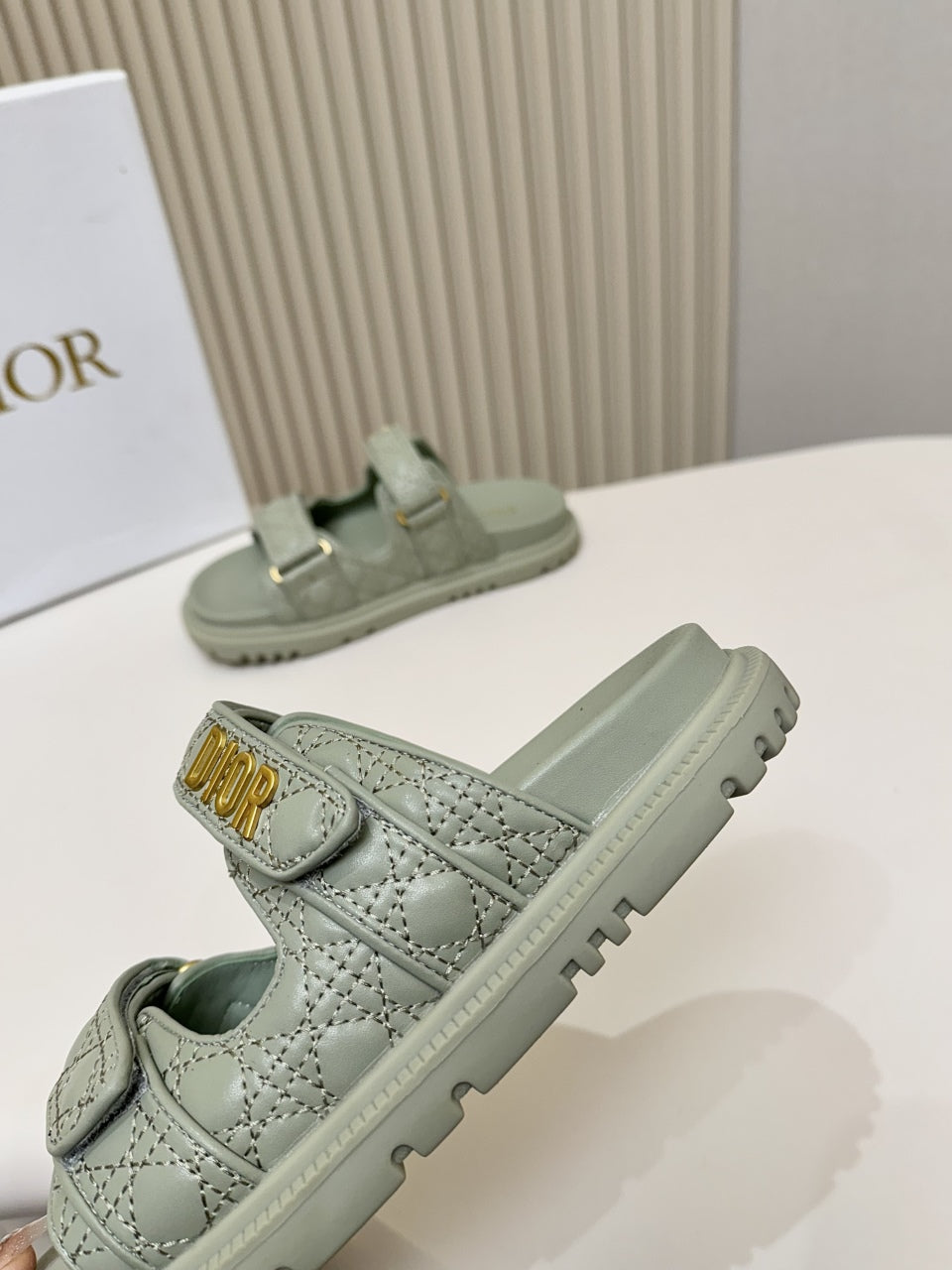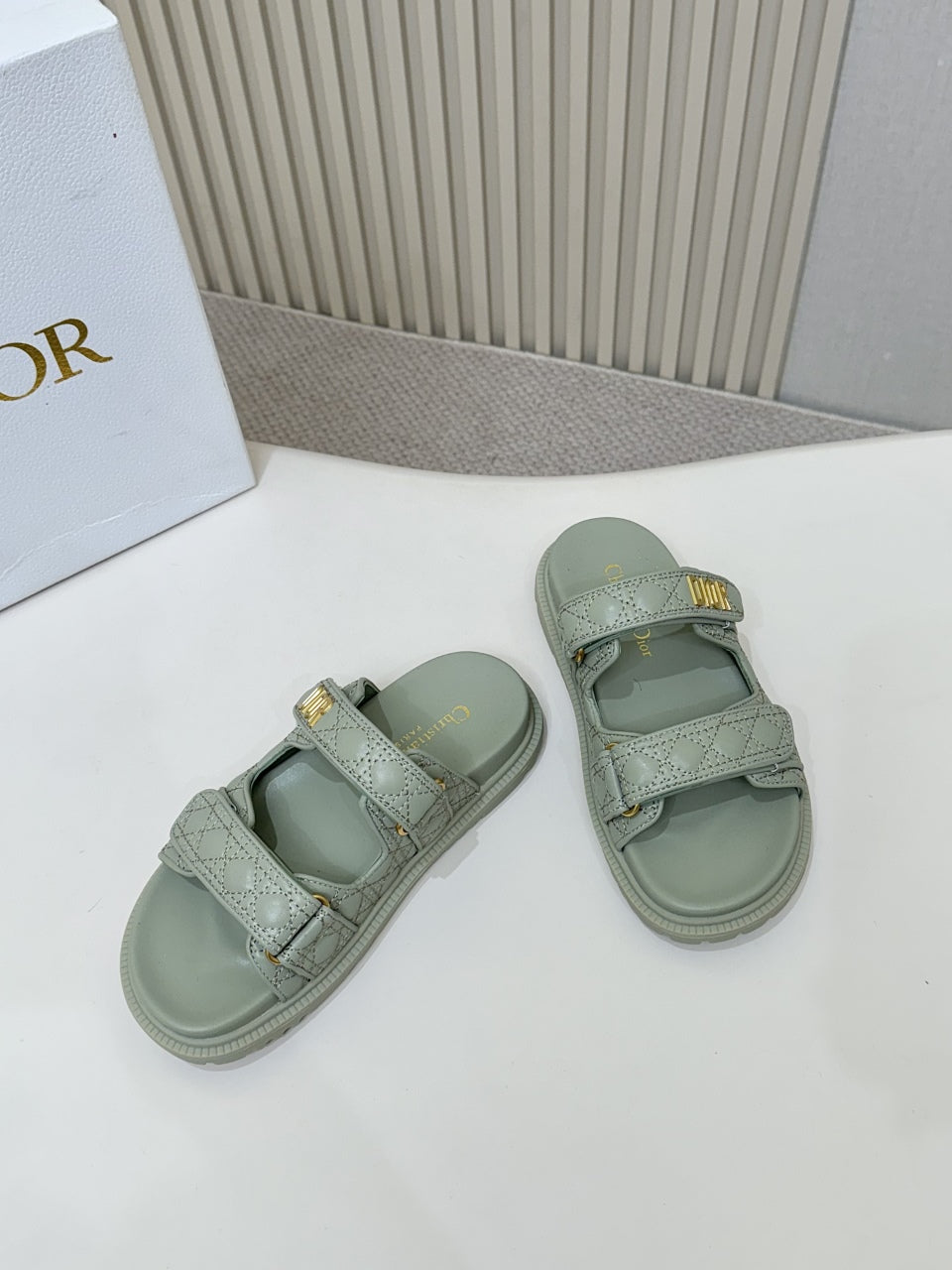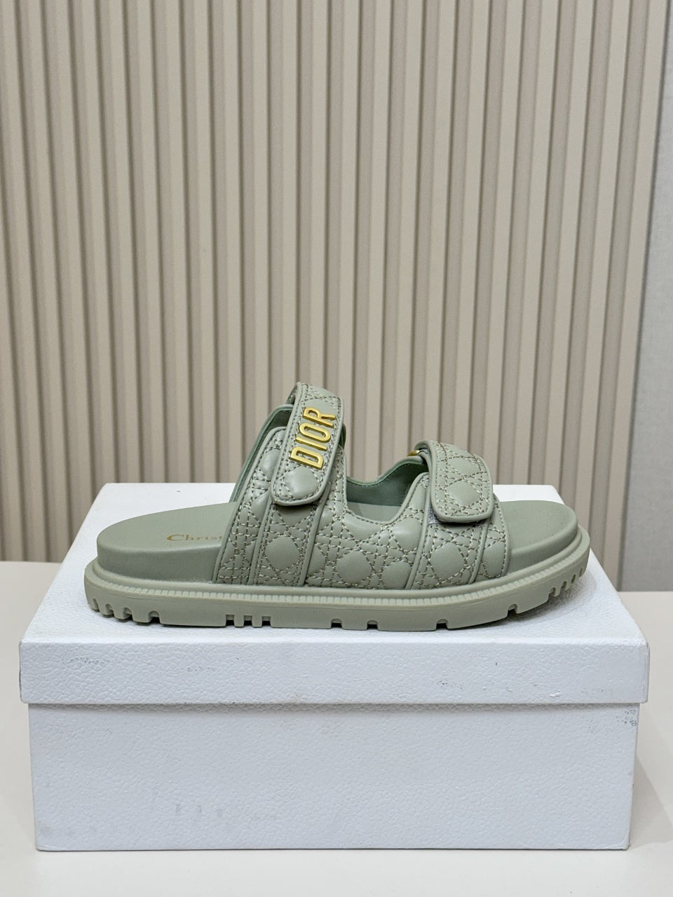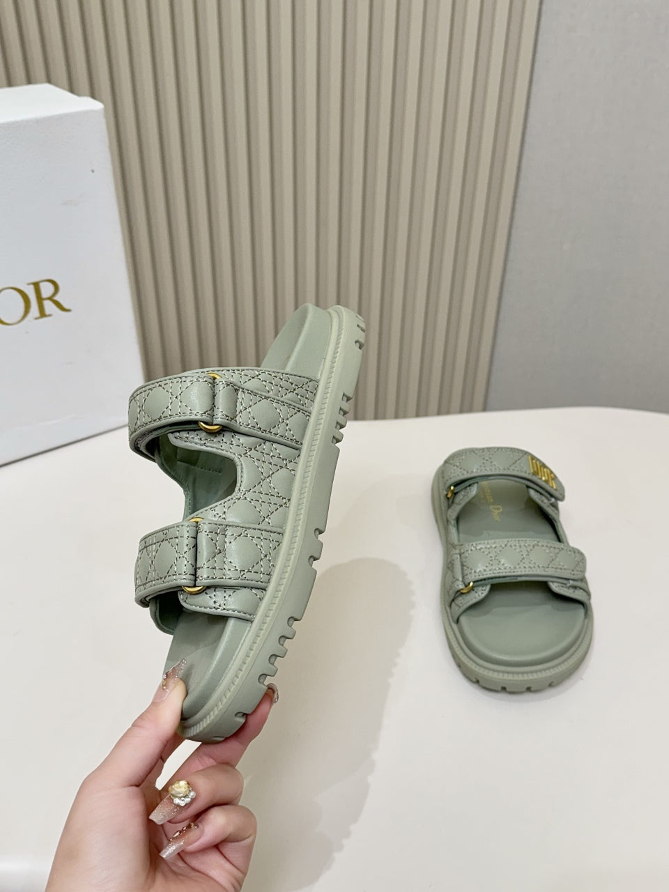 DIOR CLASSIC DOUBLE-STRAP SLIDES 25S IN PALE TEAL GRAY CALFSKIN
