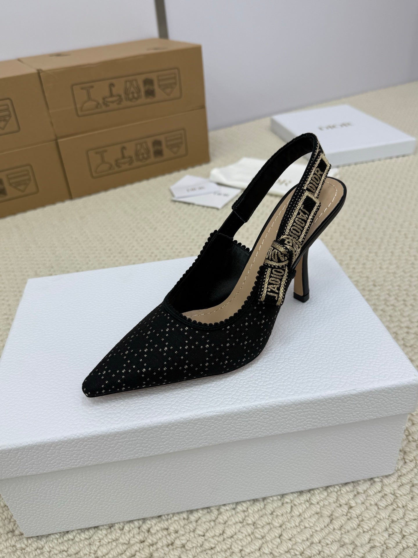 DIOR HIGH SLINGBACK 100 MM 25S IN BLACK FABRIC AND BRAND NAME EMBROIDERY