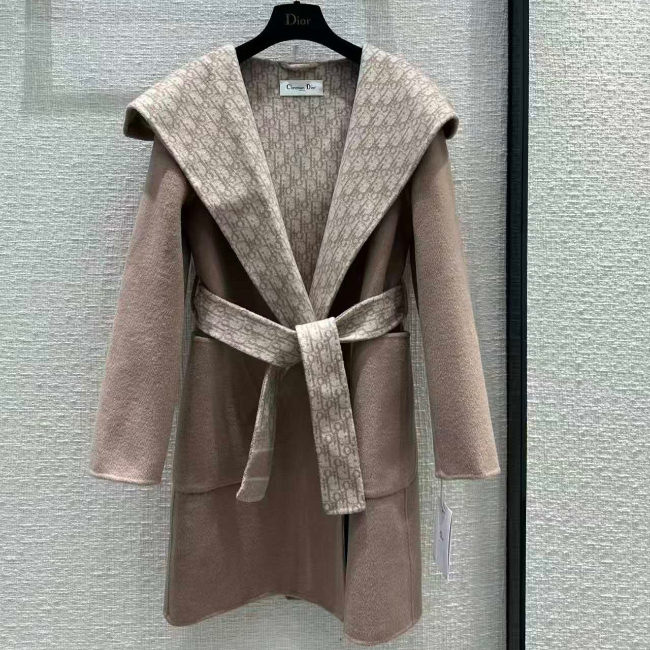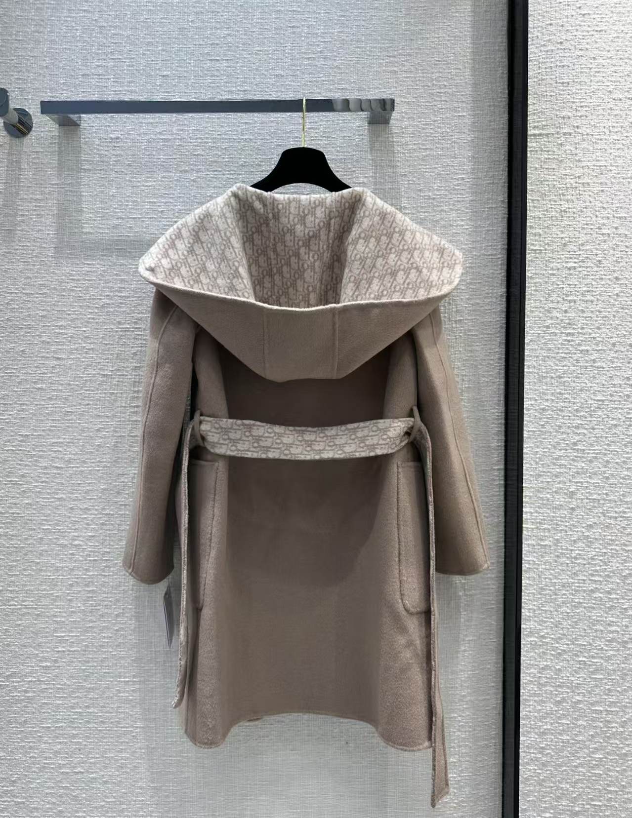 DIOR HOODED COAT IN DARK BEIGE WOOL