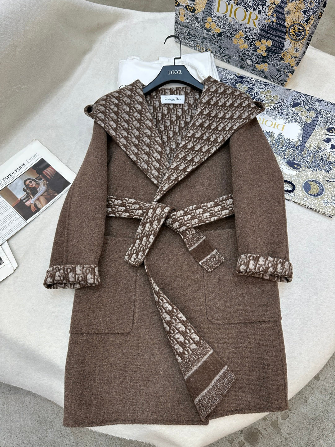 DIOR HOODED COAT IN DARK BROWN WOOL
