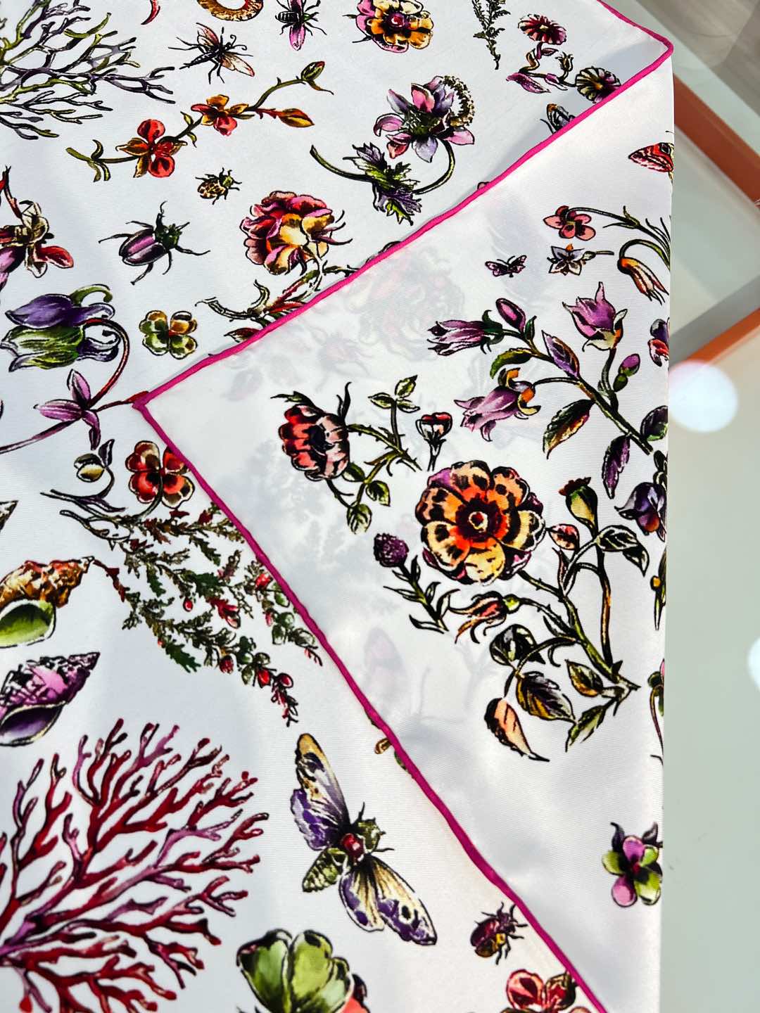 DIOR REVERSIBLE PRINTED SQUARE SCARF 90 CM IN WHITE SILK 7735868