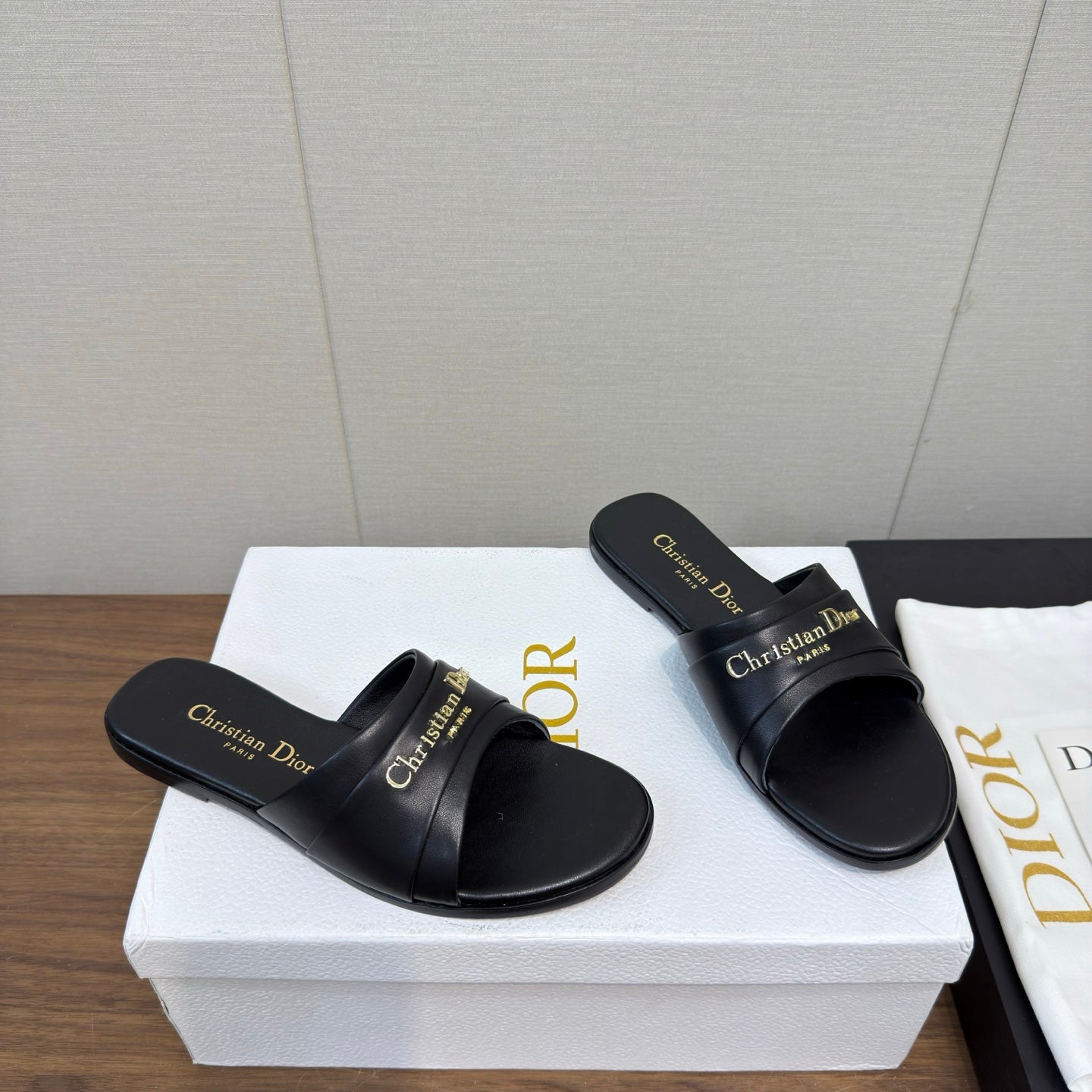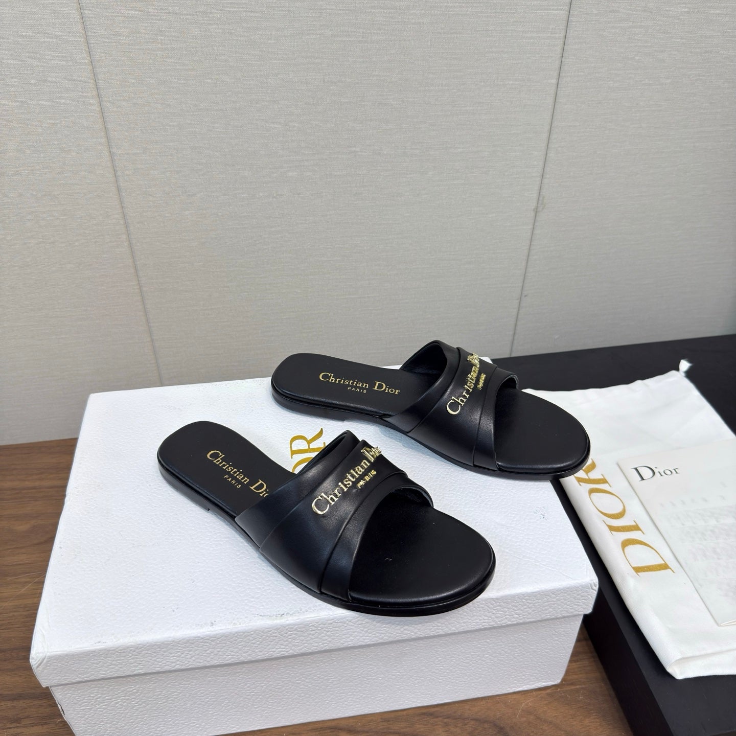 DIOR SANDAL 25S IN BLACK LAMBSKIN WITH GOLD HARDWARE