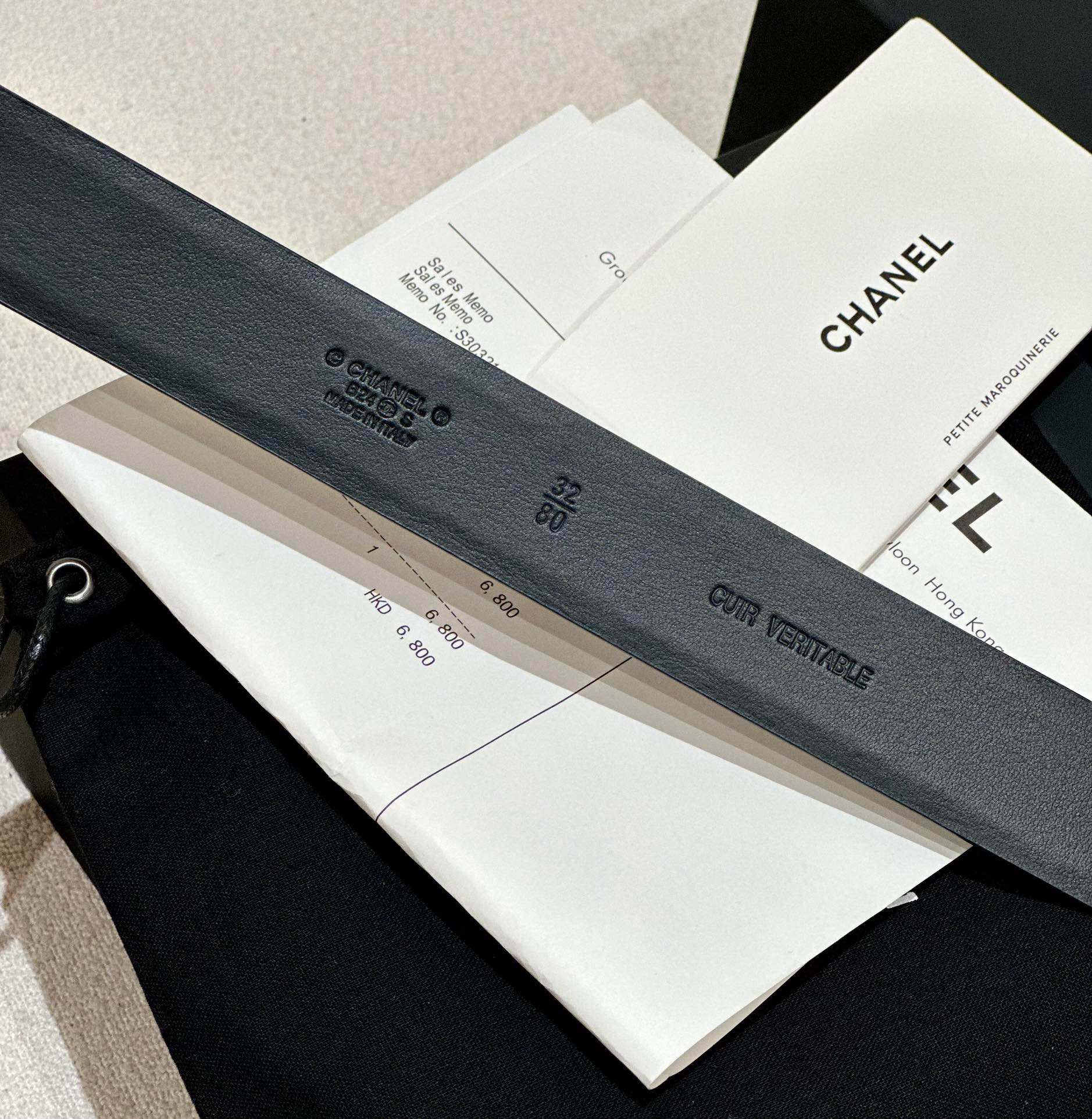 DOUBLE C BELT 30MM IN BLACK CALFSKIN WITH GOLD HARDWARE AND CARO STITCHING