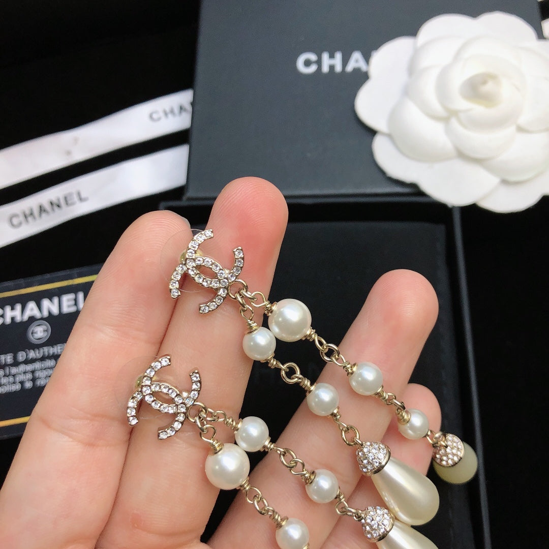 DOUBLE C EARRINGS IN GOLD METAL WITH TWO PEARL TASSELS