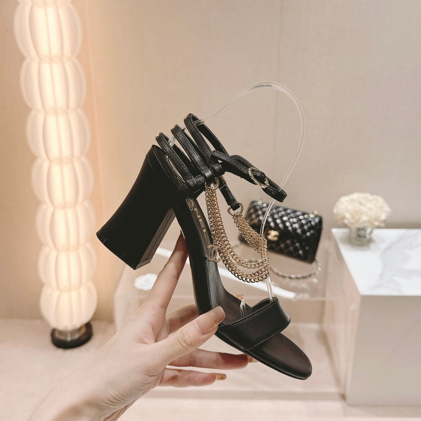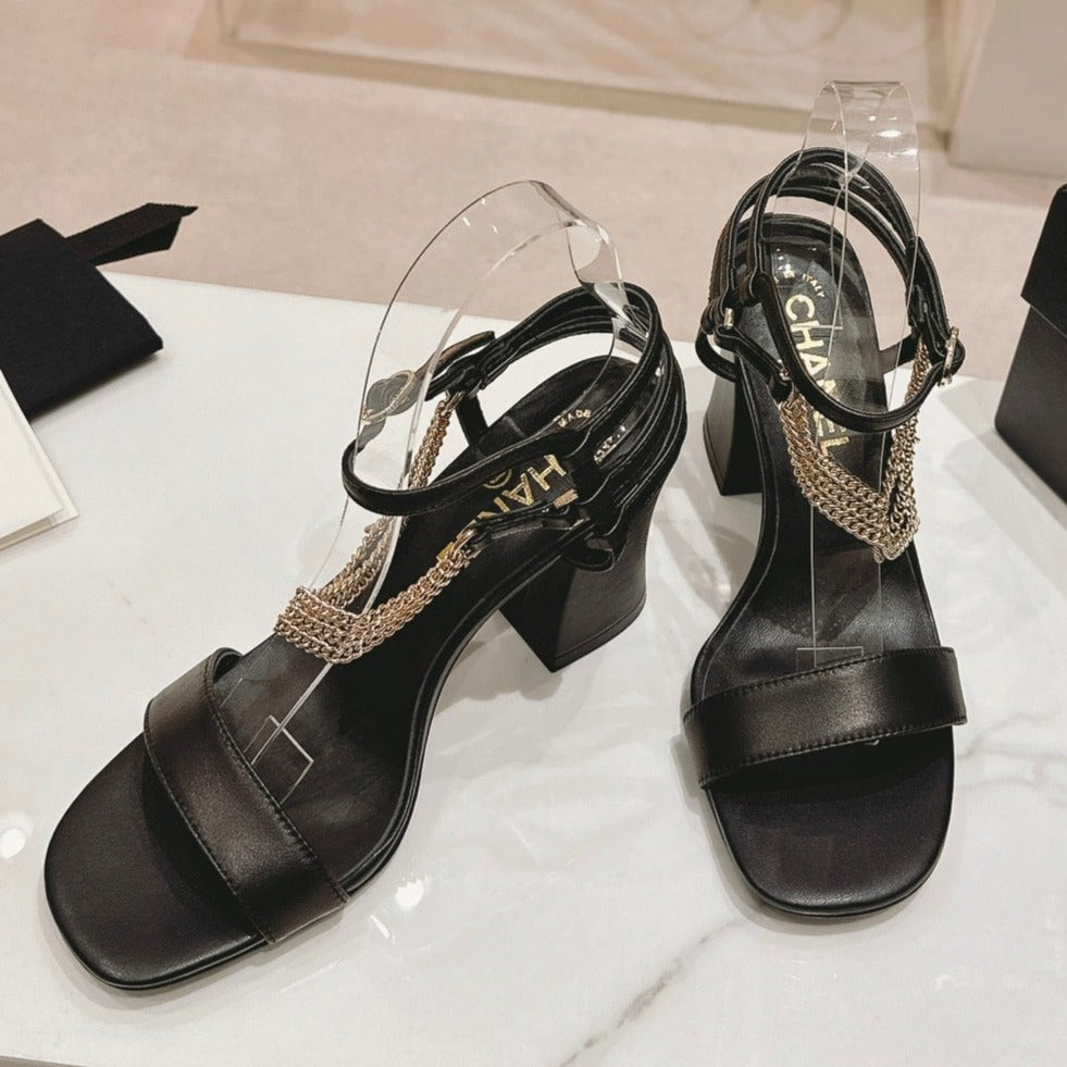 Double C Leather High Heel Sandals Black