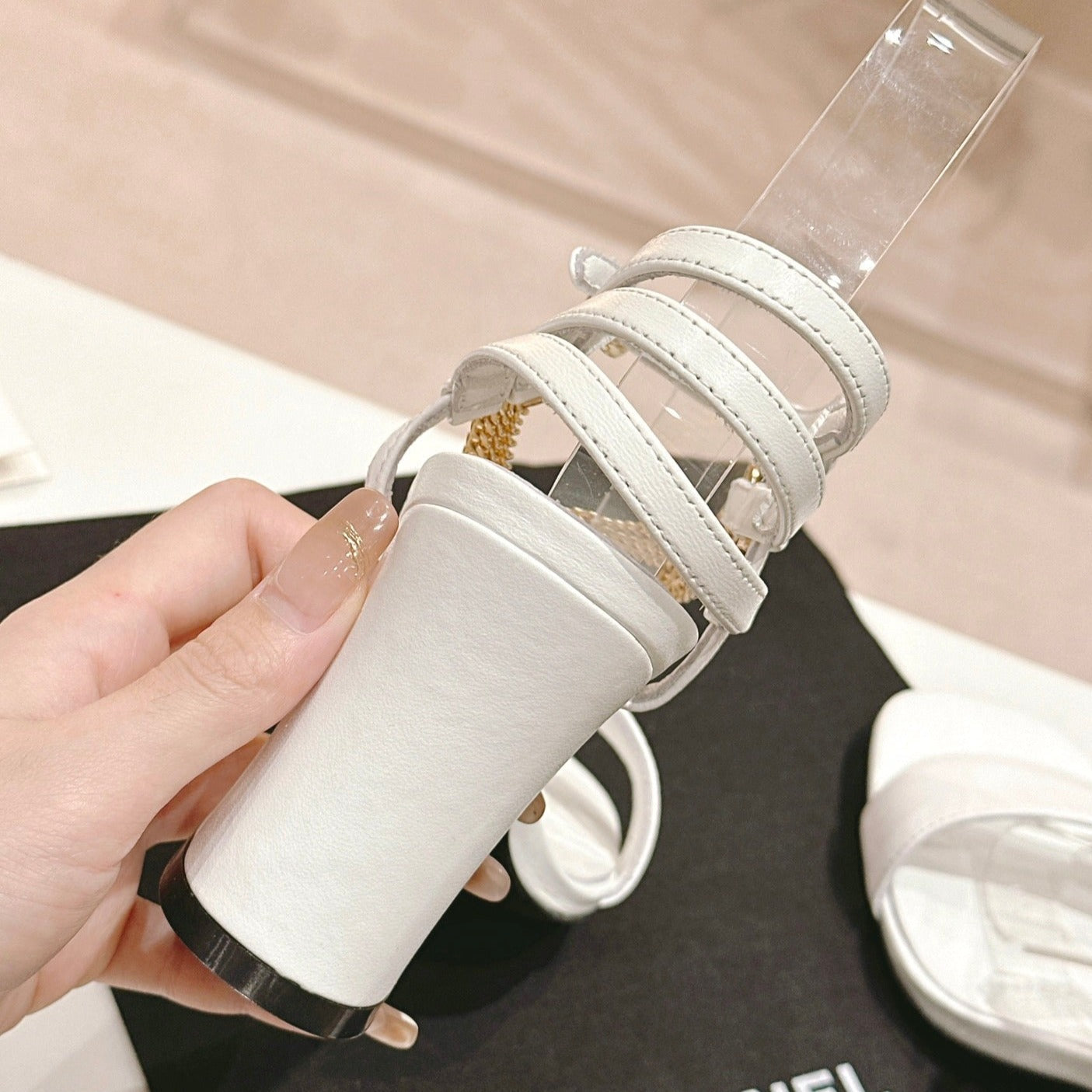 Double C Leather High Heel Sandals White